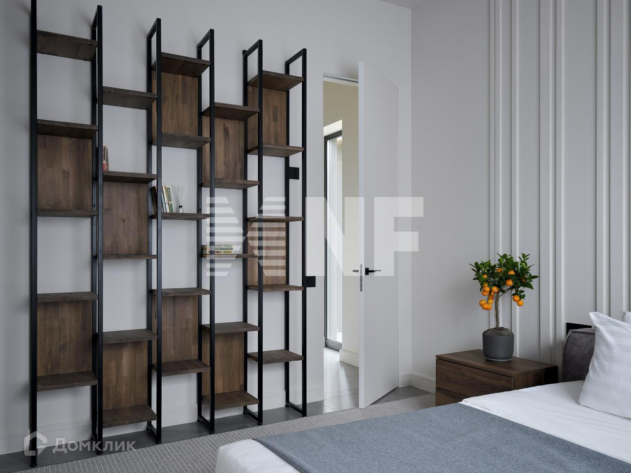 Вторая спальня в светлых тонах с отдельной гардеробной и отдельным санузлом с душевой.