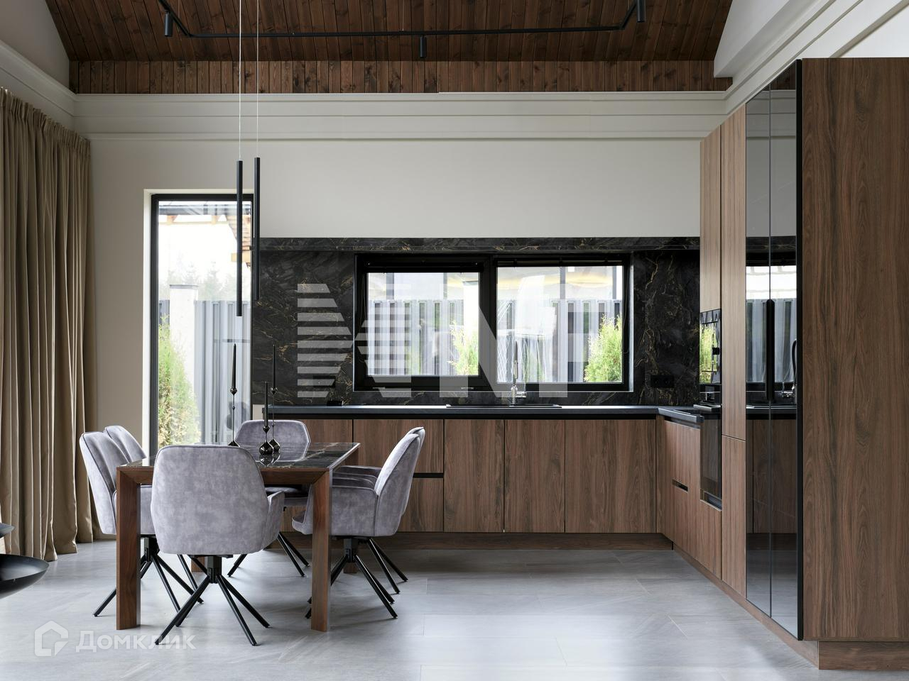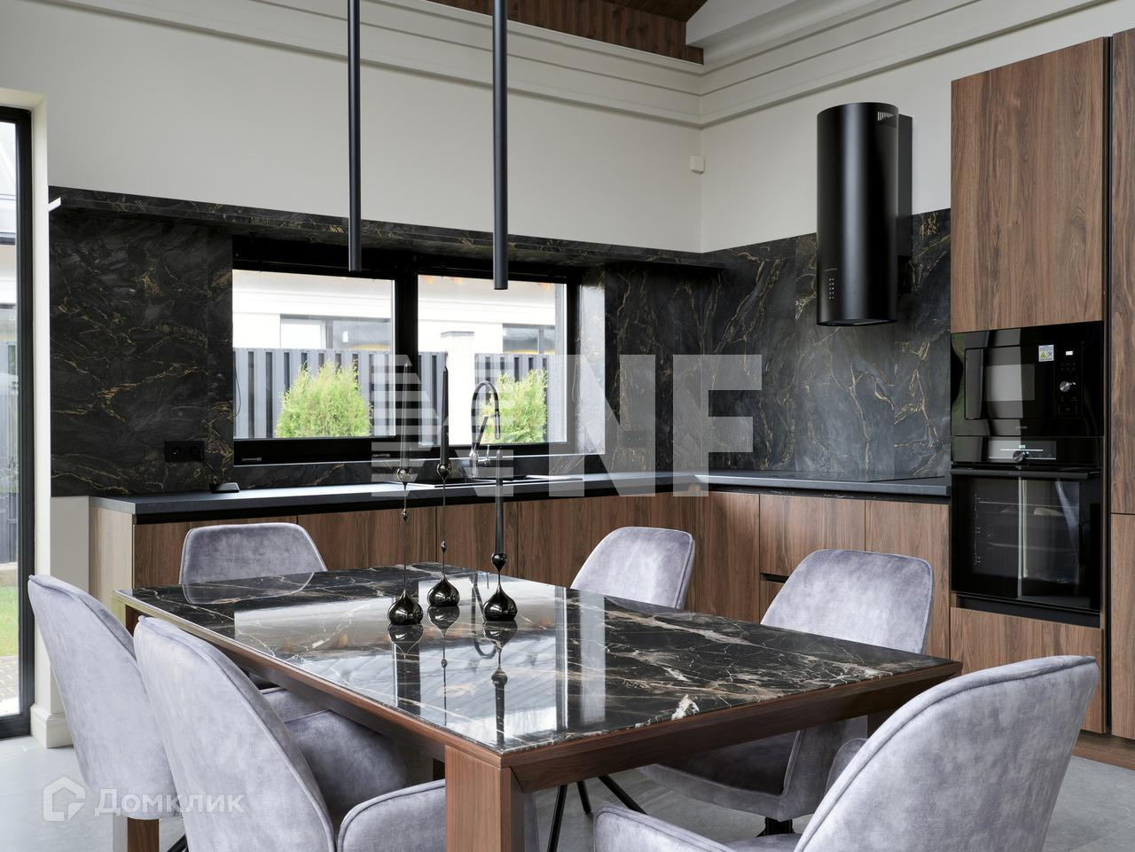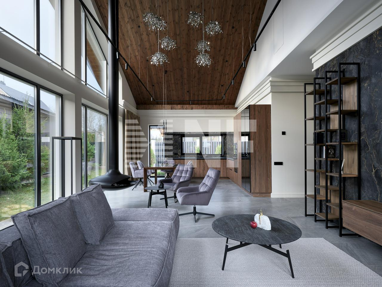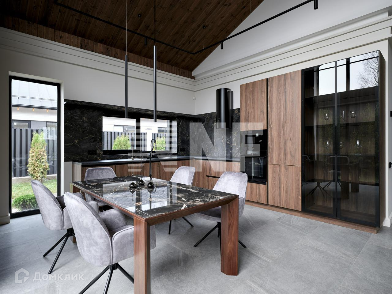 Шикарная гостиная с высокими потолками, остеклением в пол и видом на зелень внутреннего дворика и зоны отдыха с кострищем. Эргономичная Кухня-столовая, наполнена техникой линейки Gorenje для кулинарных шедевров.
