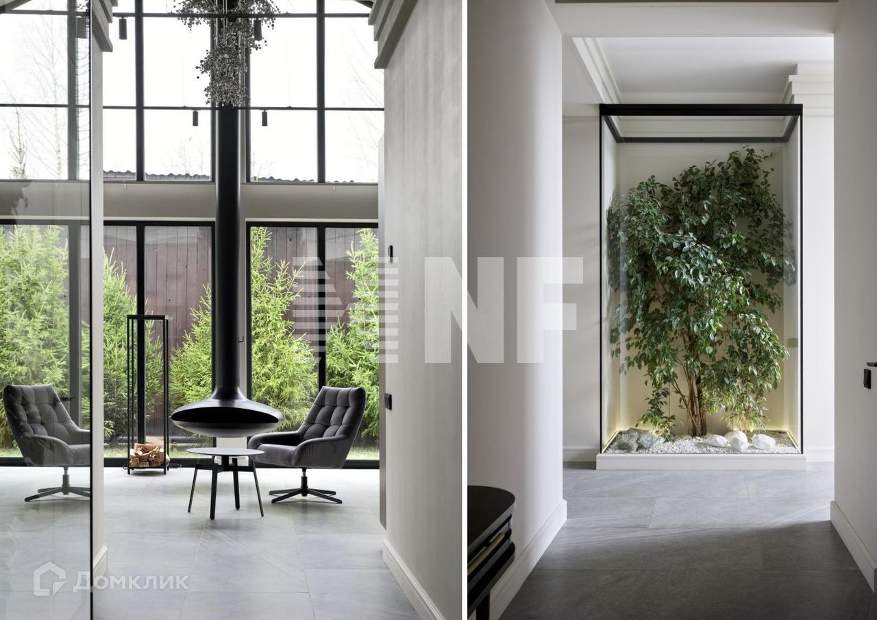 Живой природный оазис в центре дома - символ монументальности и благородства, как в цветовой гамме так и в балансе природных фактур: стекла, камня и дерева.