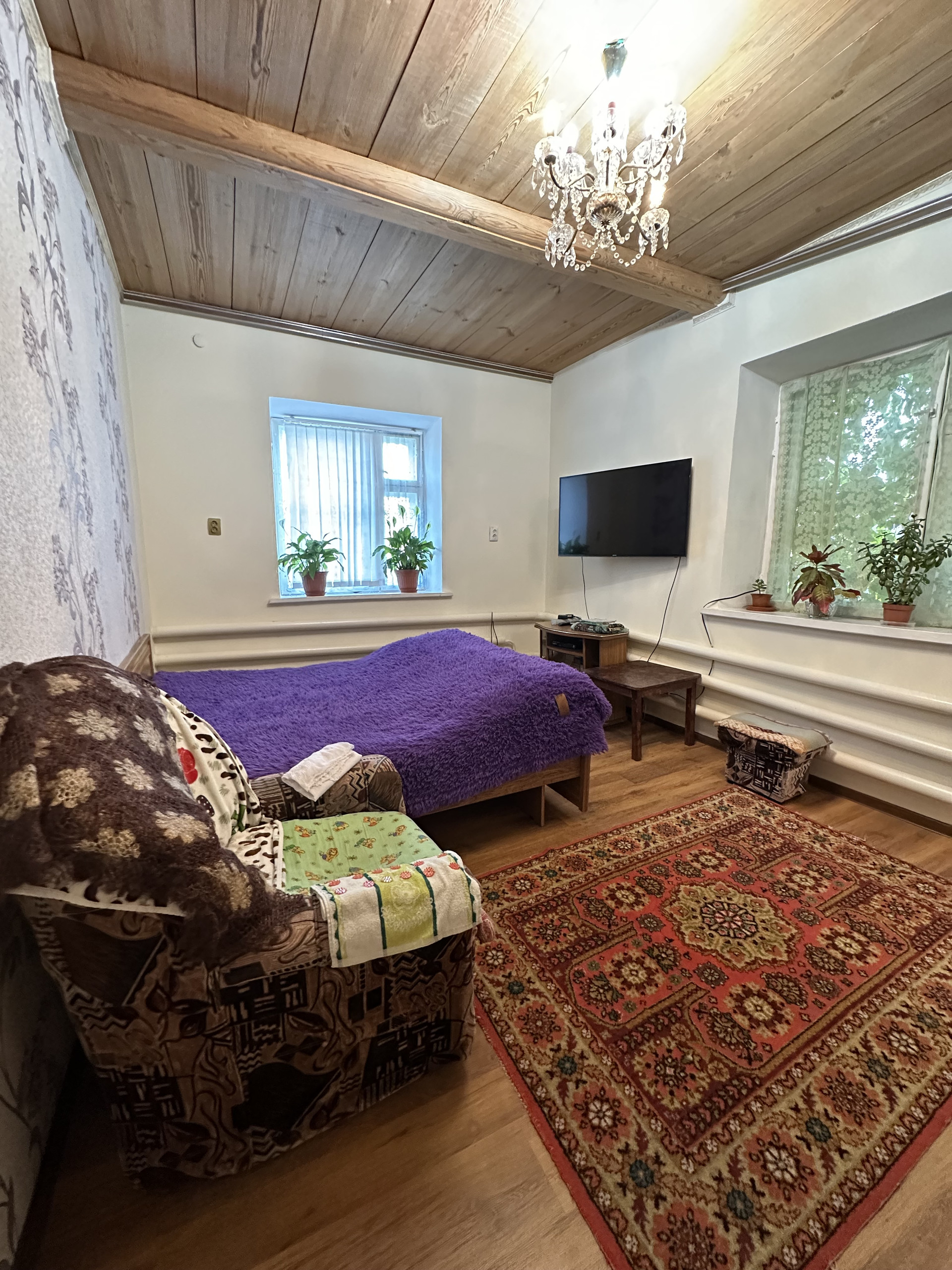 Дом из силикатного кирпича 1994 года постройки . Высокие потолки (3,2м) просторные комнаты., сан узел дома, кухня и гостевая комната. Комнаты изолированные.