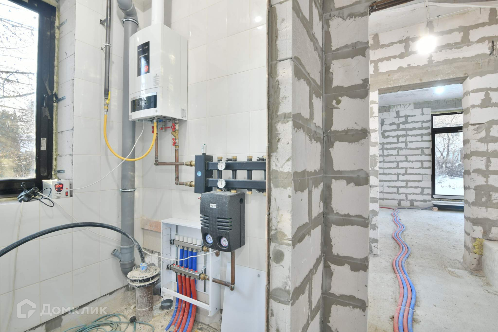 Дом отапливается магистральным газом. Работает газовый котел Будерус (обвязан медью), подключены радиаторы отопления Керми и внутрипольные конвекторы Варманн. Предусмотрено устройство тёплых полов. Установлены автоматические ворота. Из брусчатки сделаны отмостка и площадка для парковки автомобилей. Укладка рулонного газона входит в стоимость. Сделана черновая электрика - всё готово к ремонту и отделке.