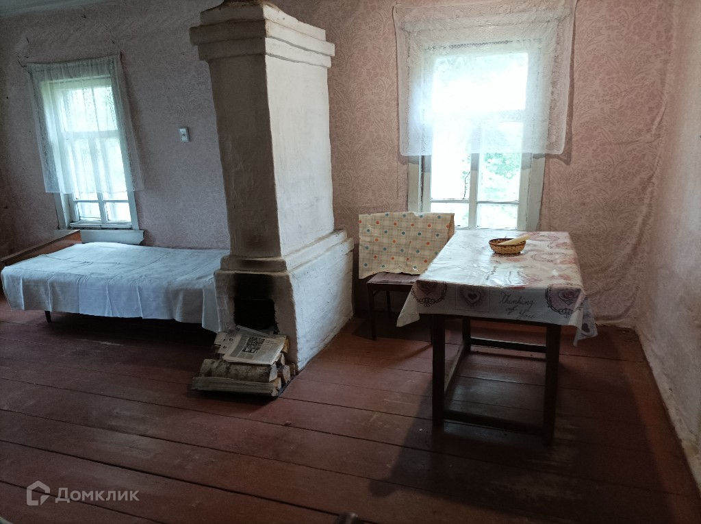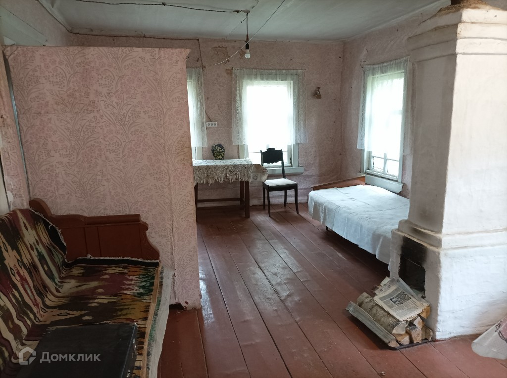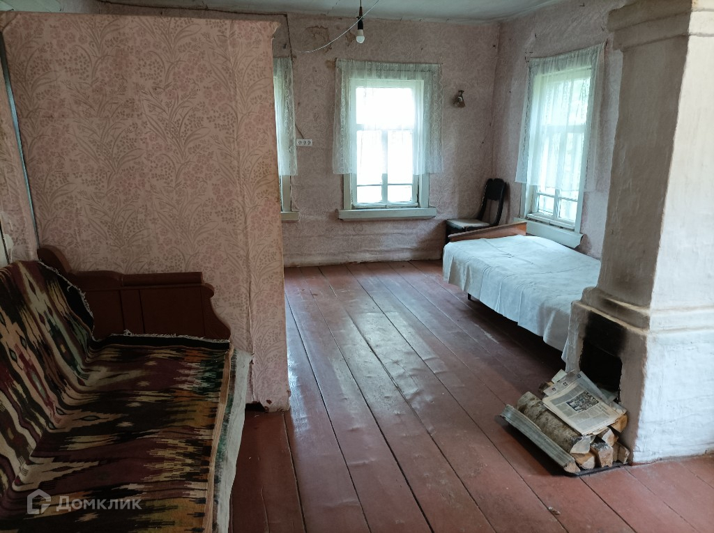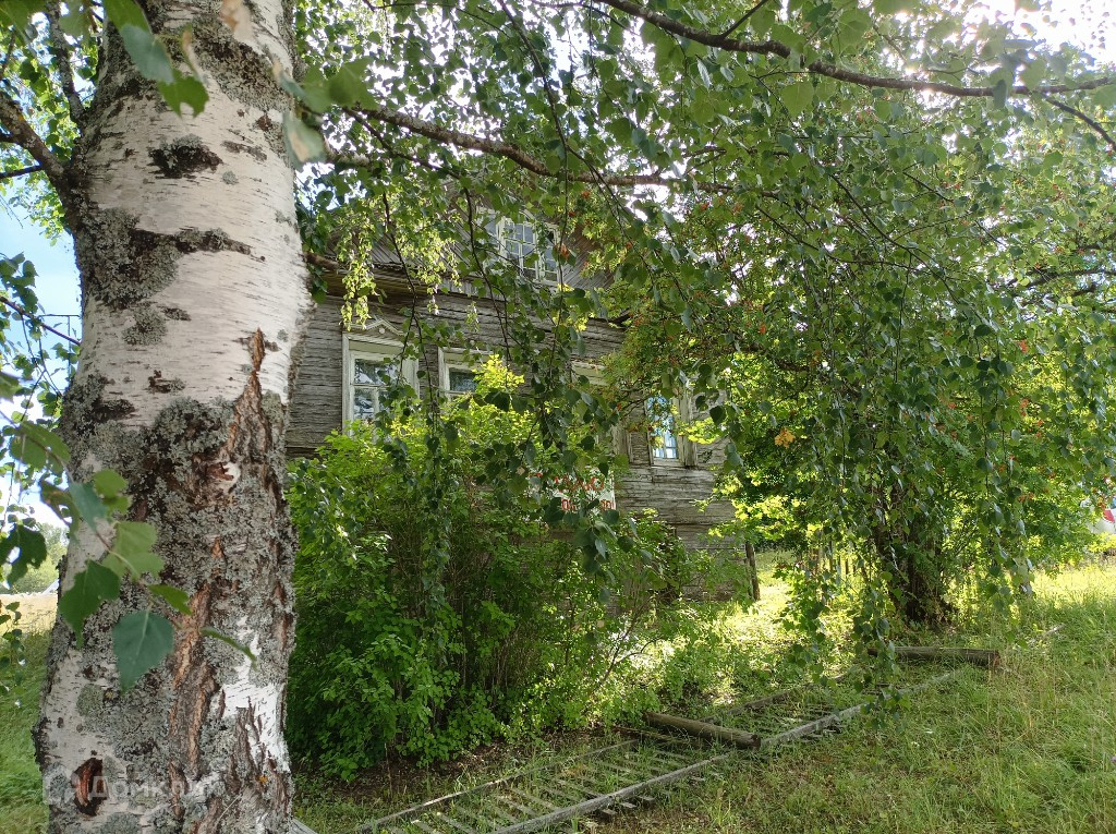 Дом расположен в начале деревни. Большой деревенский с печным отоплением(две печки). Стоит прямо, фундамент-камни. В доме в основном строении две комнаты и кухня, на чердаке две комнаты с окнами, в подвал два  входа с улицы.