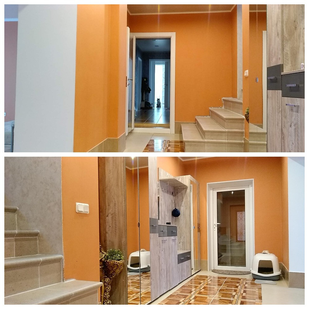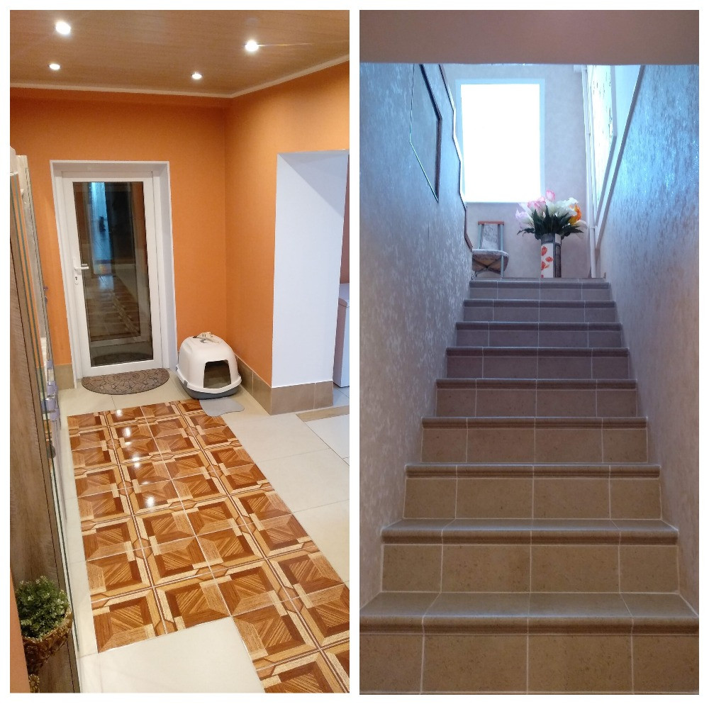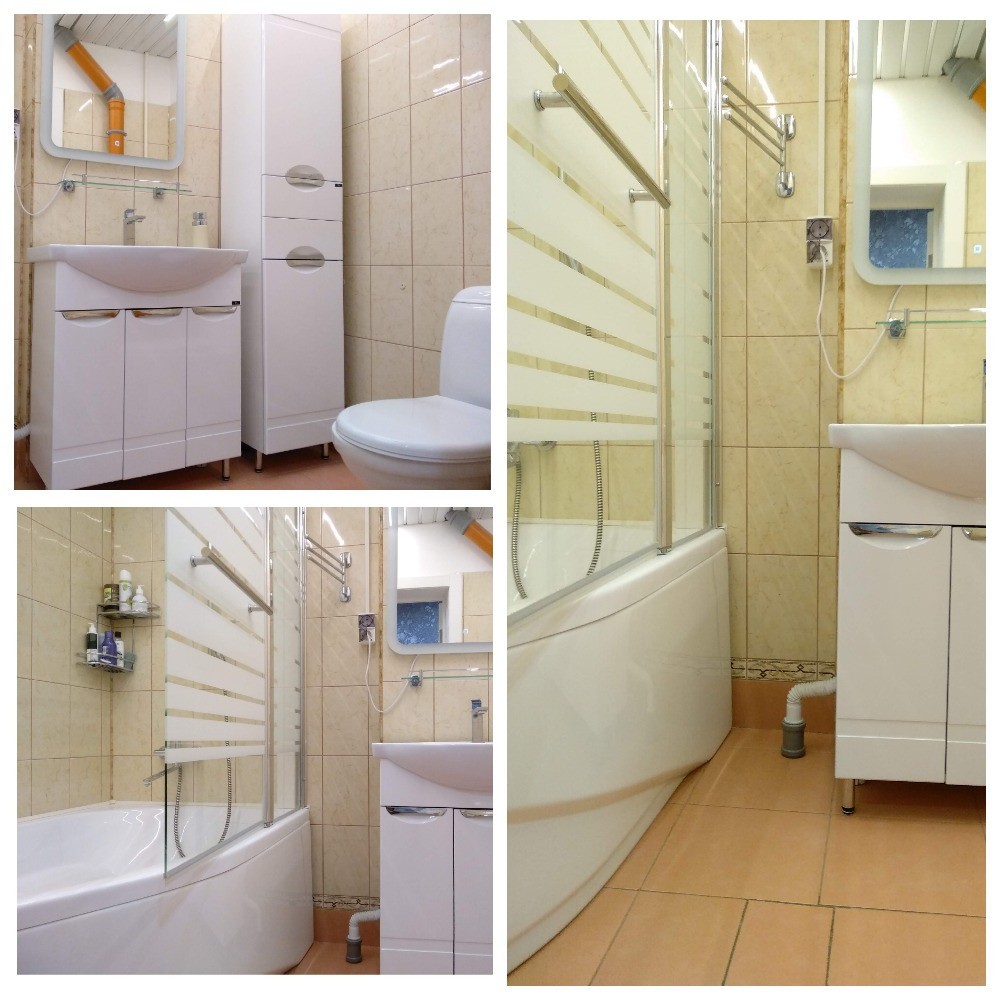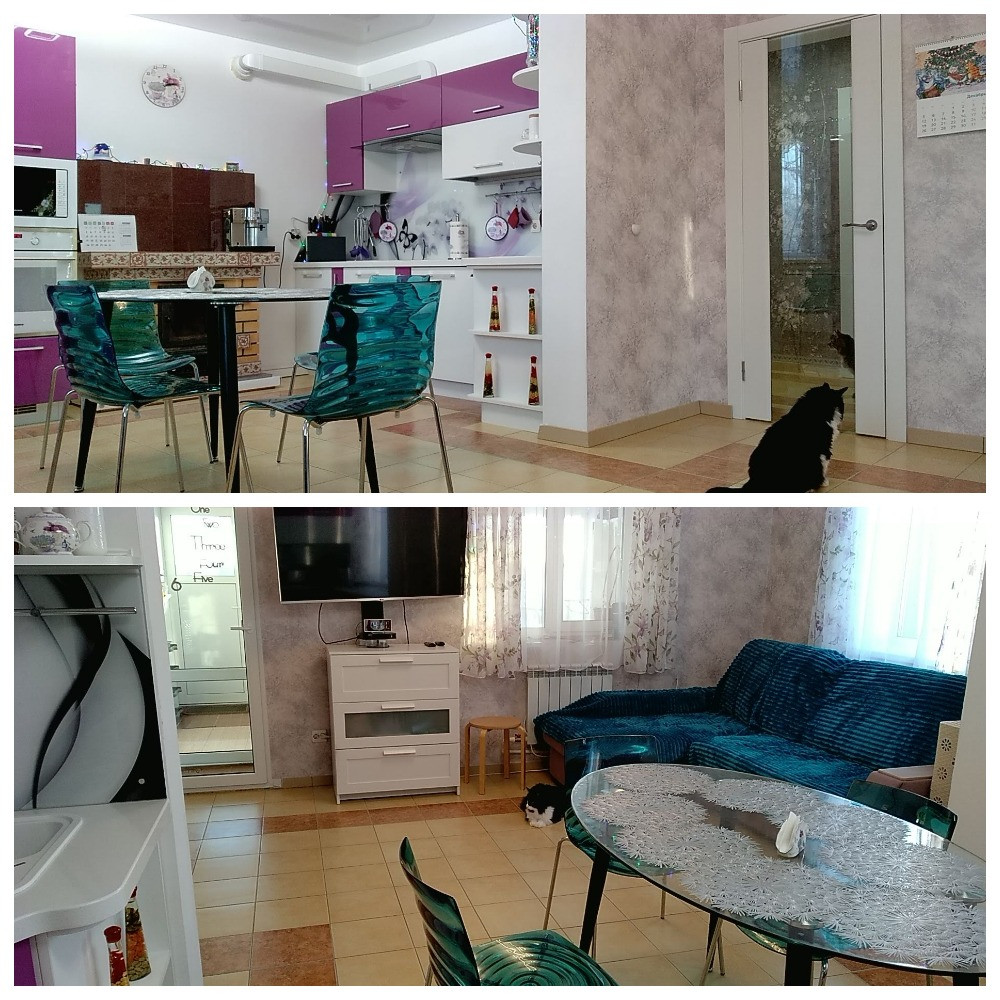 1 этаж – Прихожая, Гараж + котельная (под ними погреб), Коридор, Большая комната, Санузел, Помещение с Баней, Бассейном, Душевой и Комбинированной душевой парной, Комната спальня, Кухня-гостиная с Печью-камином. Закрытая веранда с выходом на участок. На 1 этаже – водяные теплые полы и радиаторы.