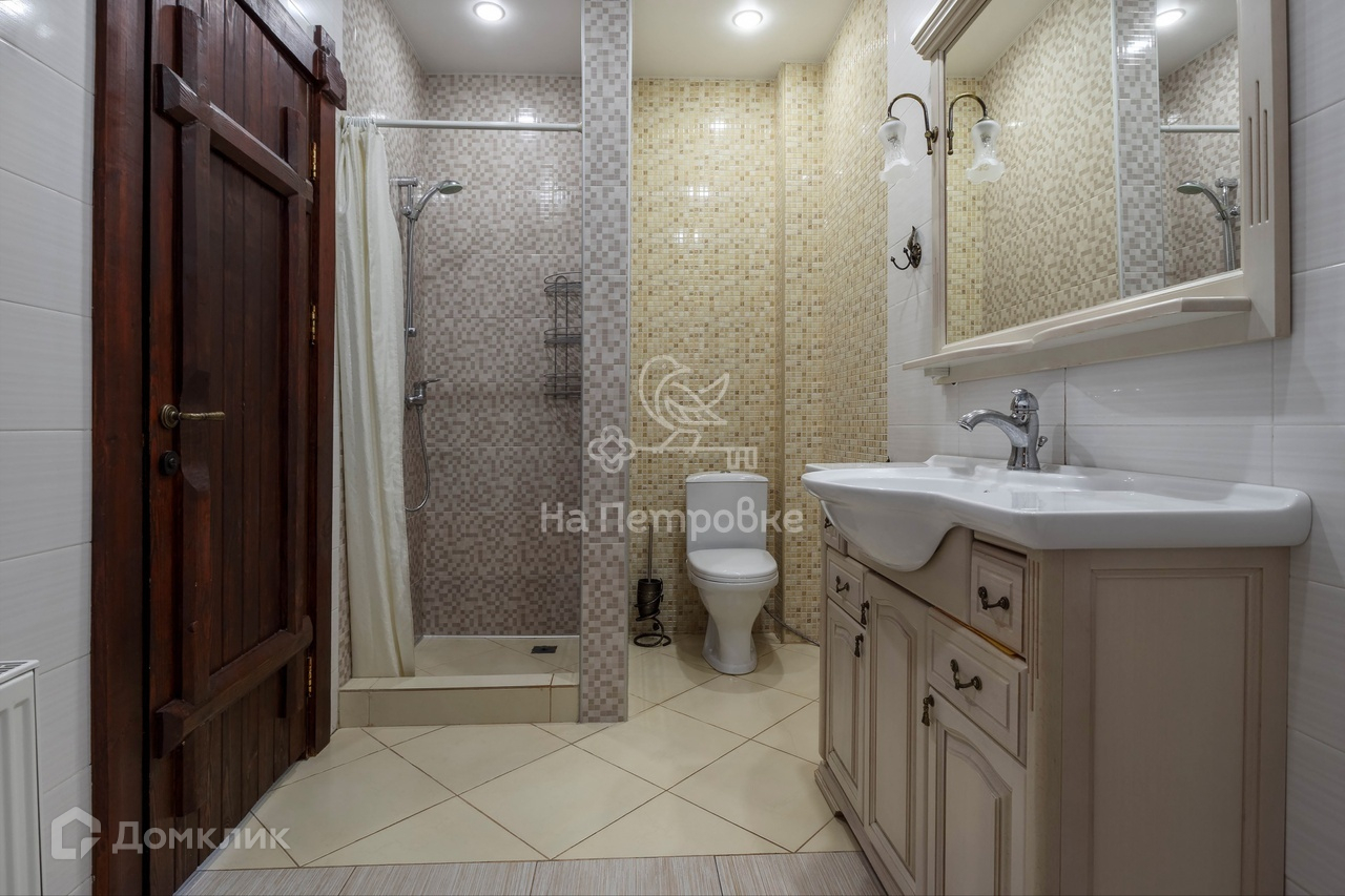 мастер-санузел с ванной и душевой кабиной, отдельная парилка.
