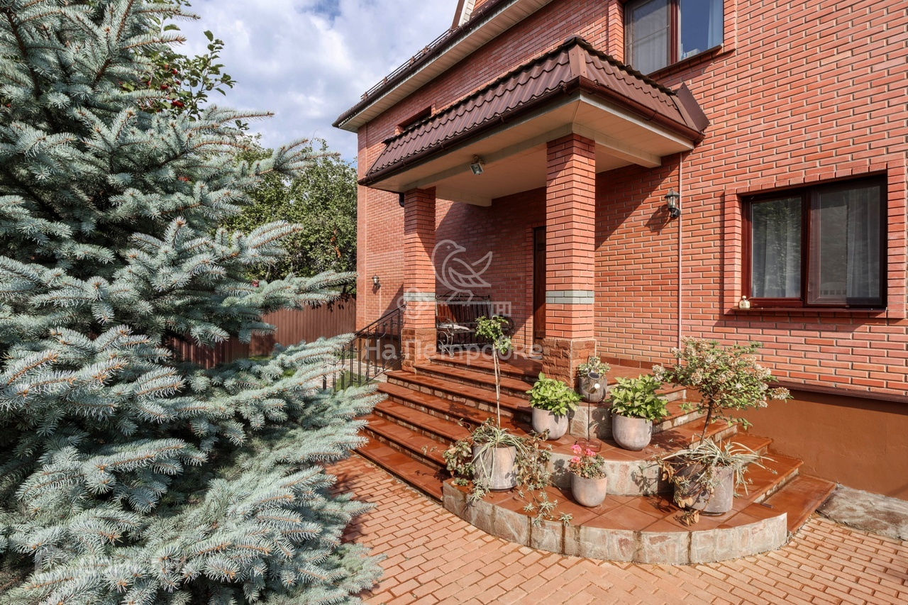 Основательный, надёжный, просторный и, в то же время, уютный коттедж построен из бруса и облицован кирпичом.