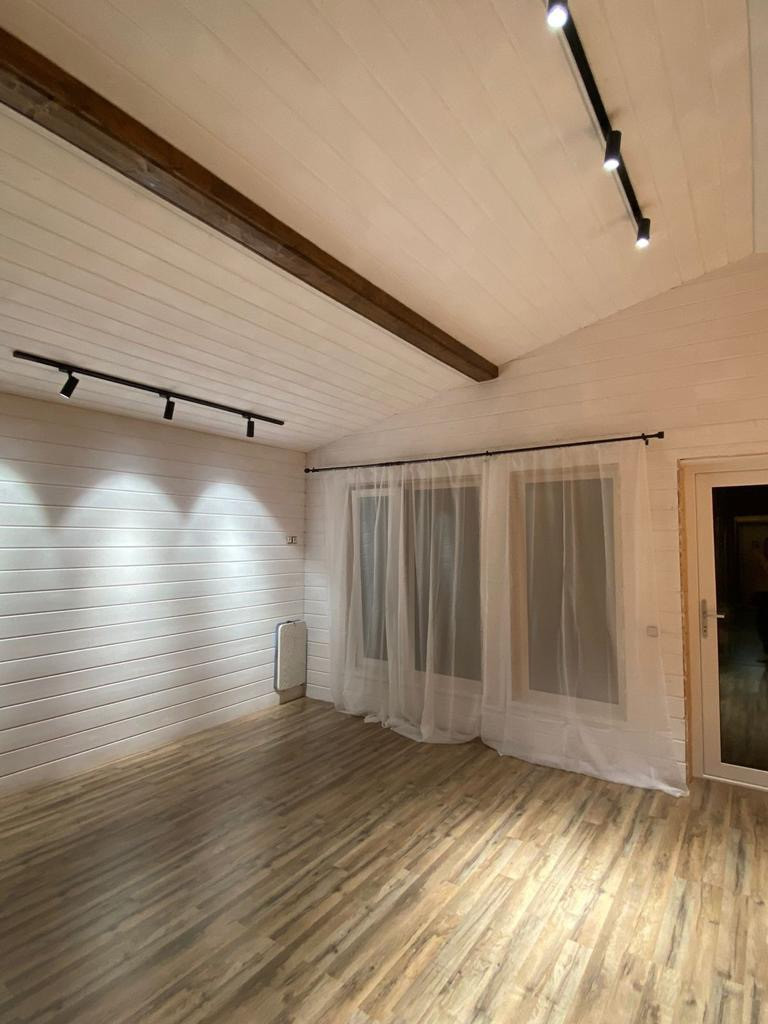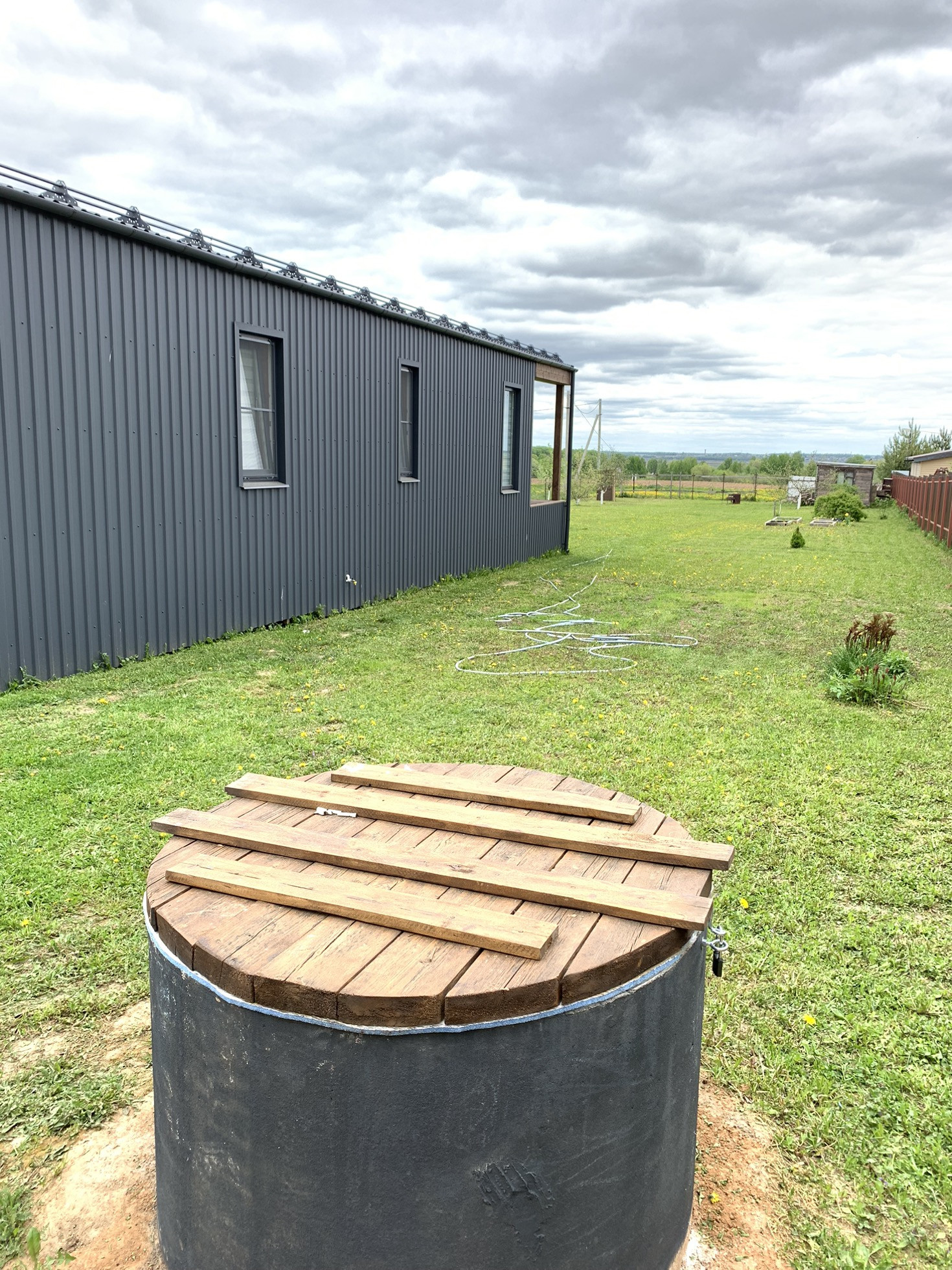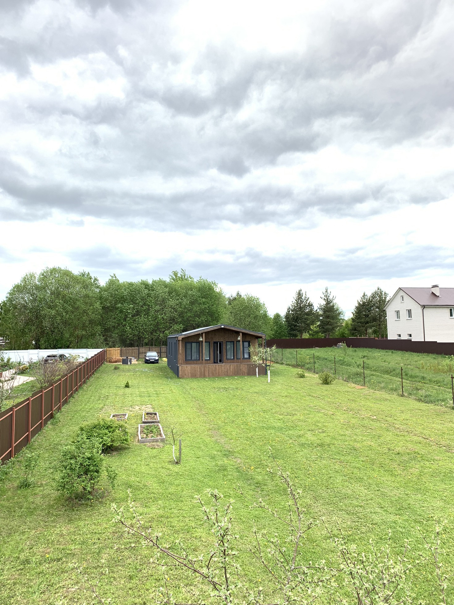 Сам дом одноэтажный, пятно застройки 8х12м, тамбур, три раздельные спальник 12х12х10кв.м., раздельный санузел, кладовая, бойлерная, большая гостинная 28кв.м. Отделка внутри имитация бруса. Отопление электрическое, конвекторы керамические, стоят датчики температуры, поделено на три зоны, чтобы регулировать отдельно, и в каждом помещении терморегуляторы для индивидуальной регулировки температуры. В доме всегда поддерживается плюсовая температура, зимой +5гр., за сутки до приезда, прибавляем до 24гр. Этой зимой мороз 30-33гр. был не проблемой. Вся техника: холодильник, плита индукция, духовка, посудомойка. Кухня ИКЕА, успели заказать) Стоит бойлер на 80литров, автоматика на воде и три фильтра. Колодец 14 колец. Биосептик и слив на три с половиной кольца. На участке плодовые деревья и кустарники: 2шт. сливы, 2шт. яблони, 1шт. груша, смородина, жимолость, клубника, все плодоносит. Посадили на участве перед домом туи, за участком в сторону поля елки. На участке бытовка 15кв.м. для садового инвентаря.