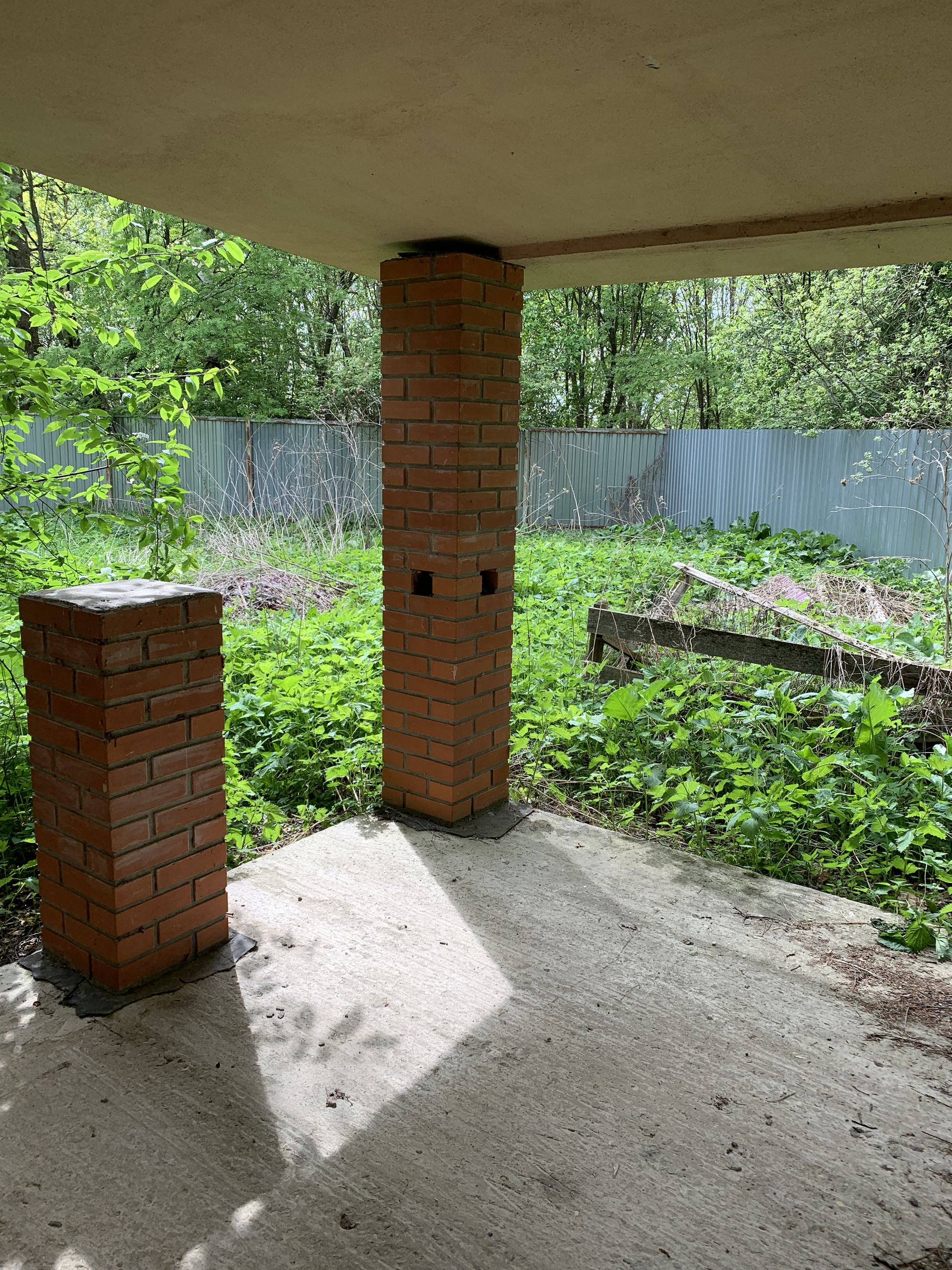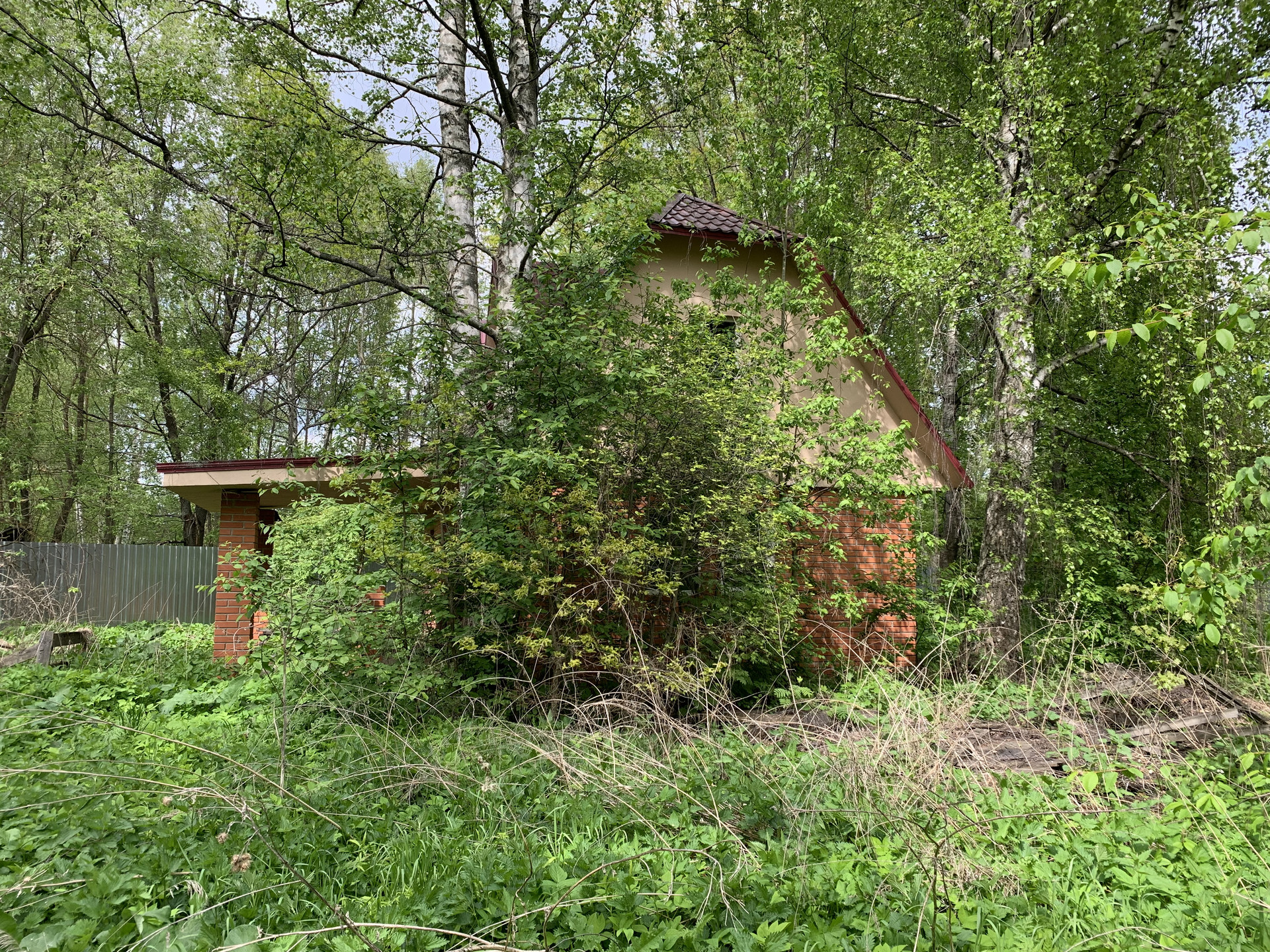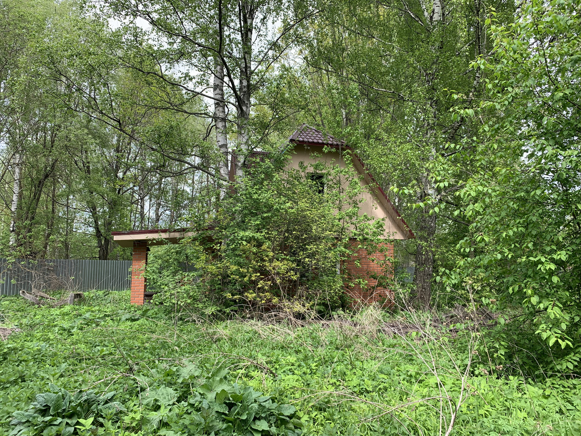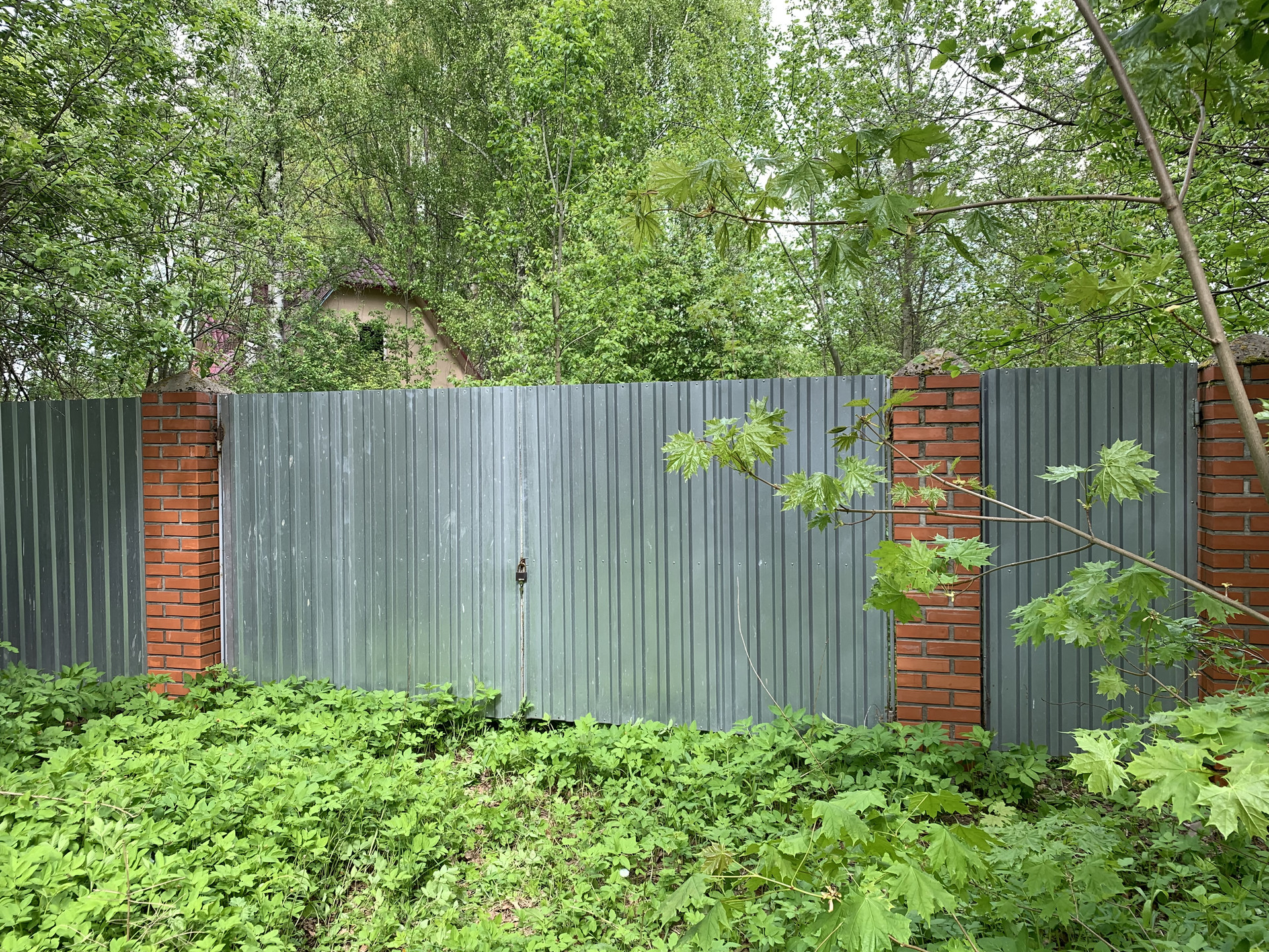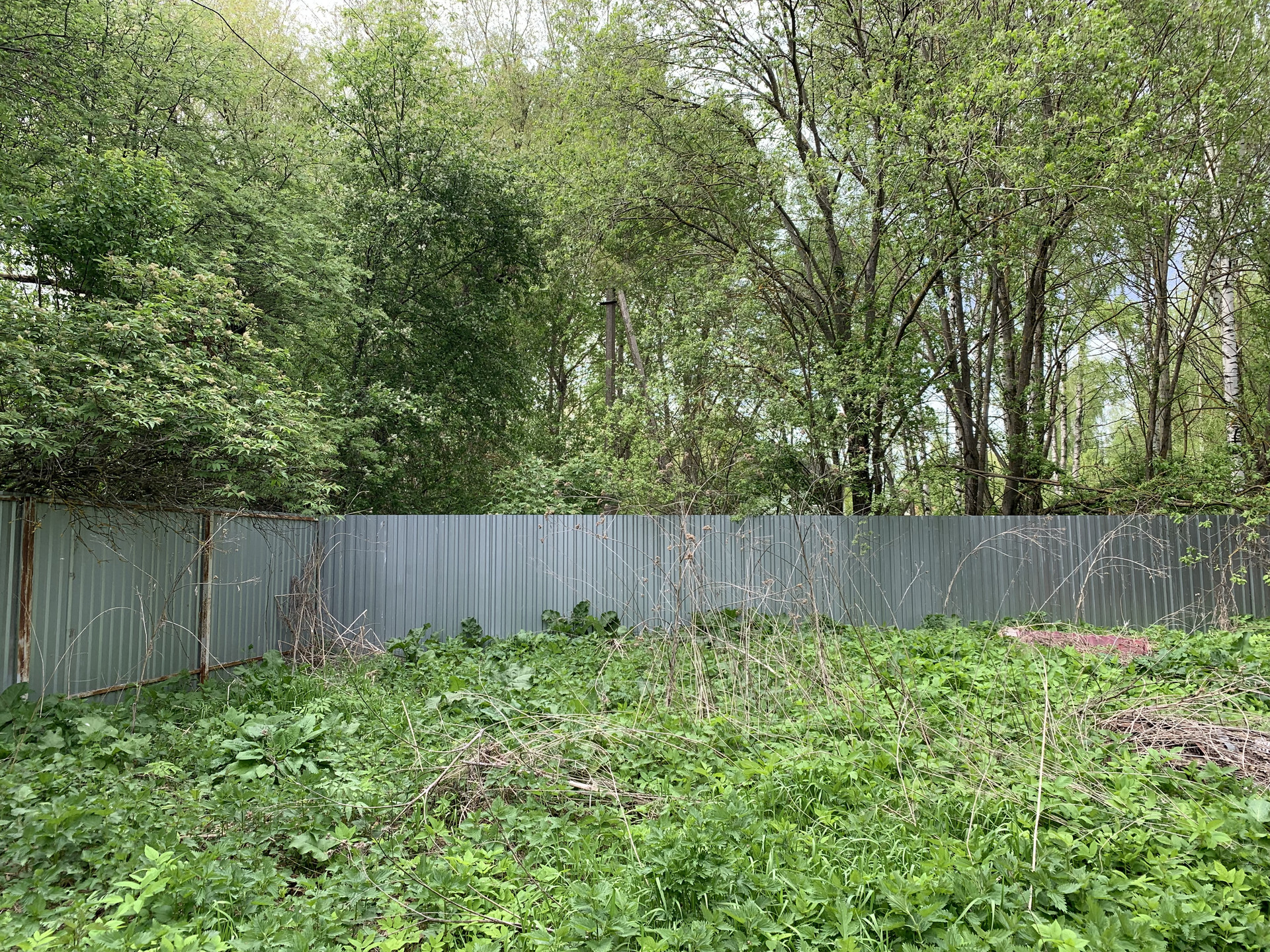 Участок прямоугольной формы, огорожен забором из профлиста, имеются ворота для авто.