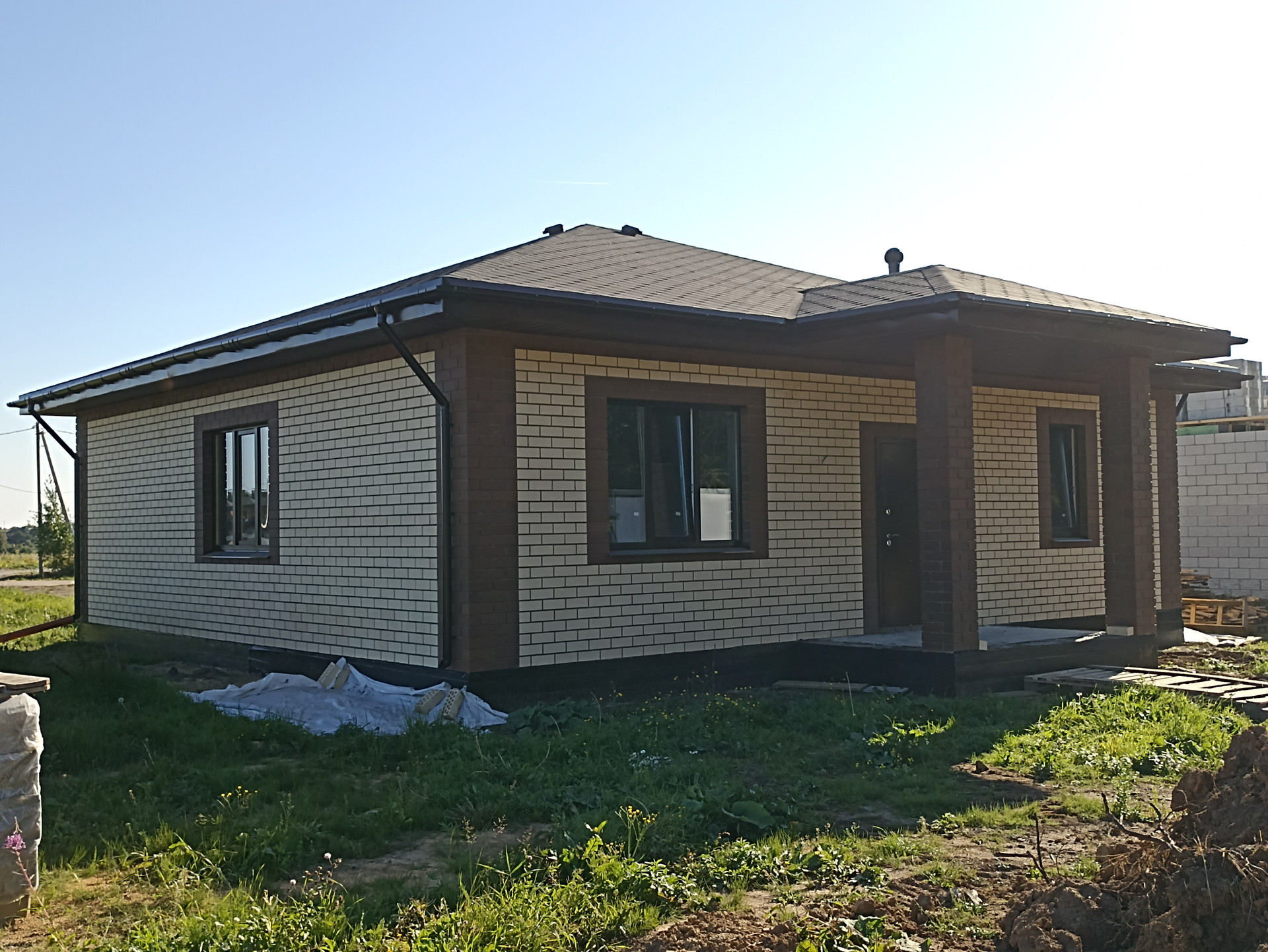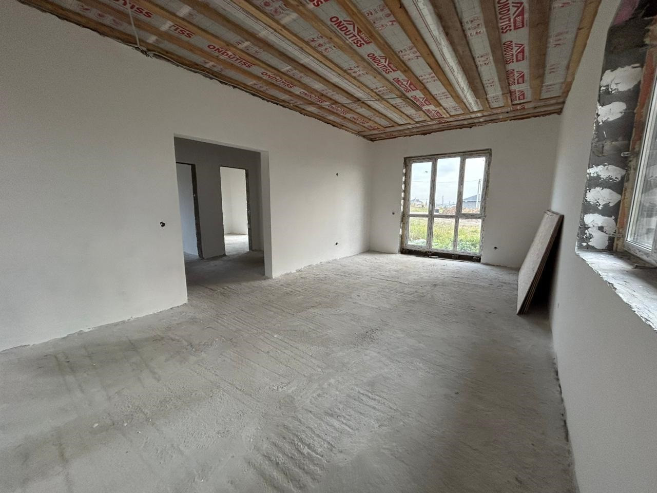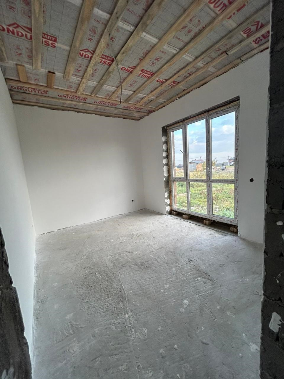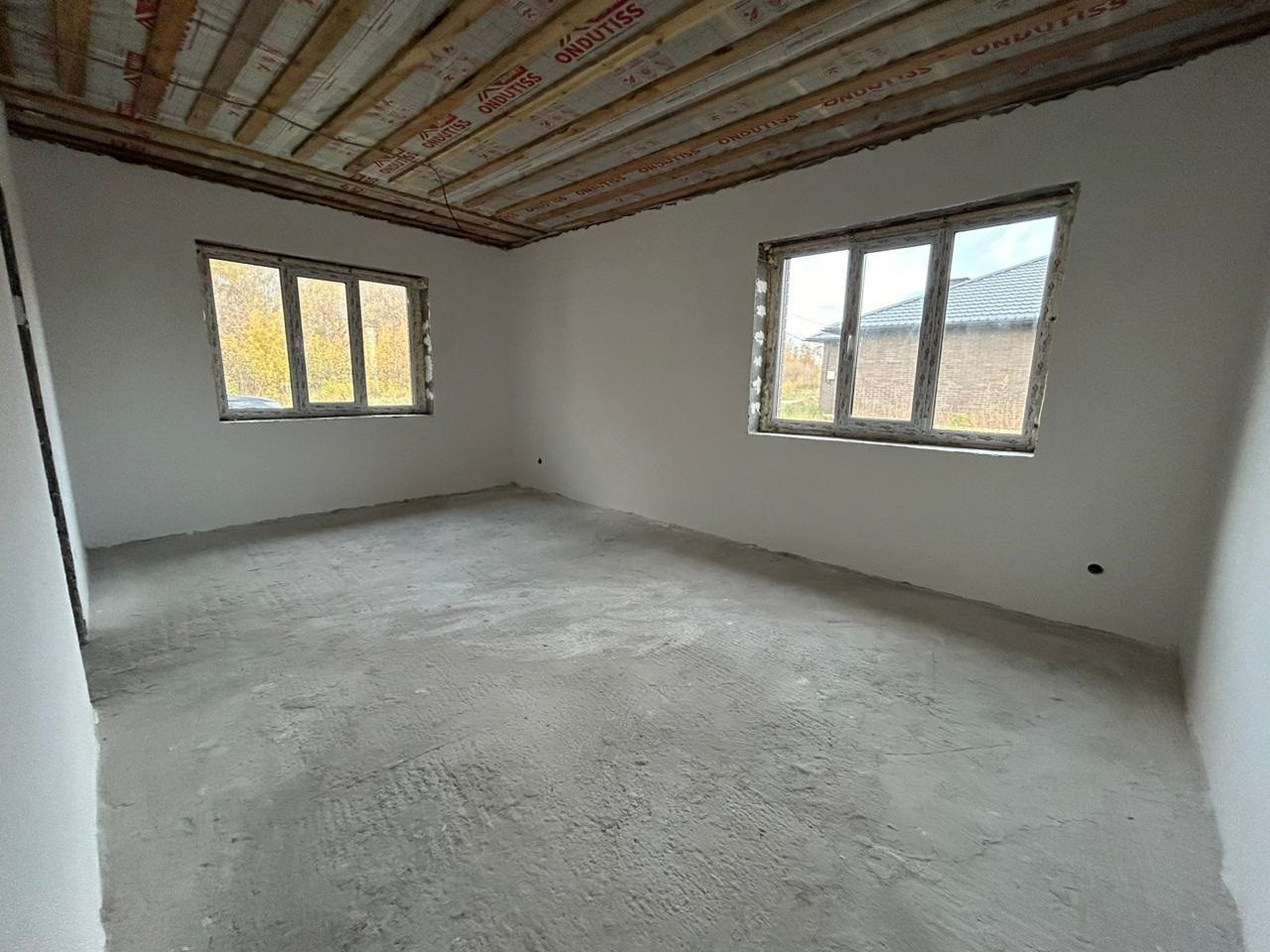 Дом построен в 2024 году. Общая площадь – 103,9кв.м. В доме просторная кухня гостиная – 27,8кв.м, две комнаты – 39,3кв.м (25,1/14,2) большую комнату возможно разделить на две, кладовая – 3,2кв.м., санузел – 9,3кв.м. Крыша покрыта мягкой черепицей, есть чердак. Стены оштукатурены, проведена внутренняя электропроводка, качественные окна ПВХ, входная дверь с терморазрывом. Вода заведена в дом, централизованная канализация, возможно провести газовое отопление. Высота пoтoлков 3 мeтpa.