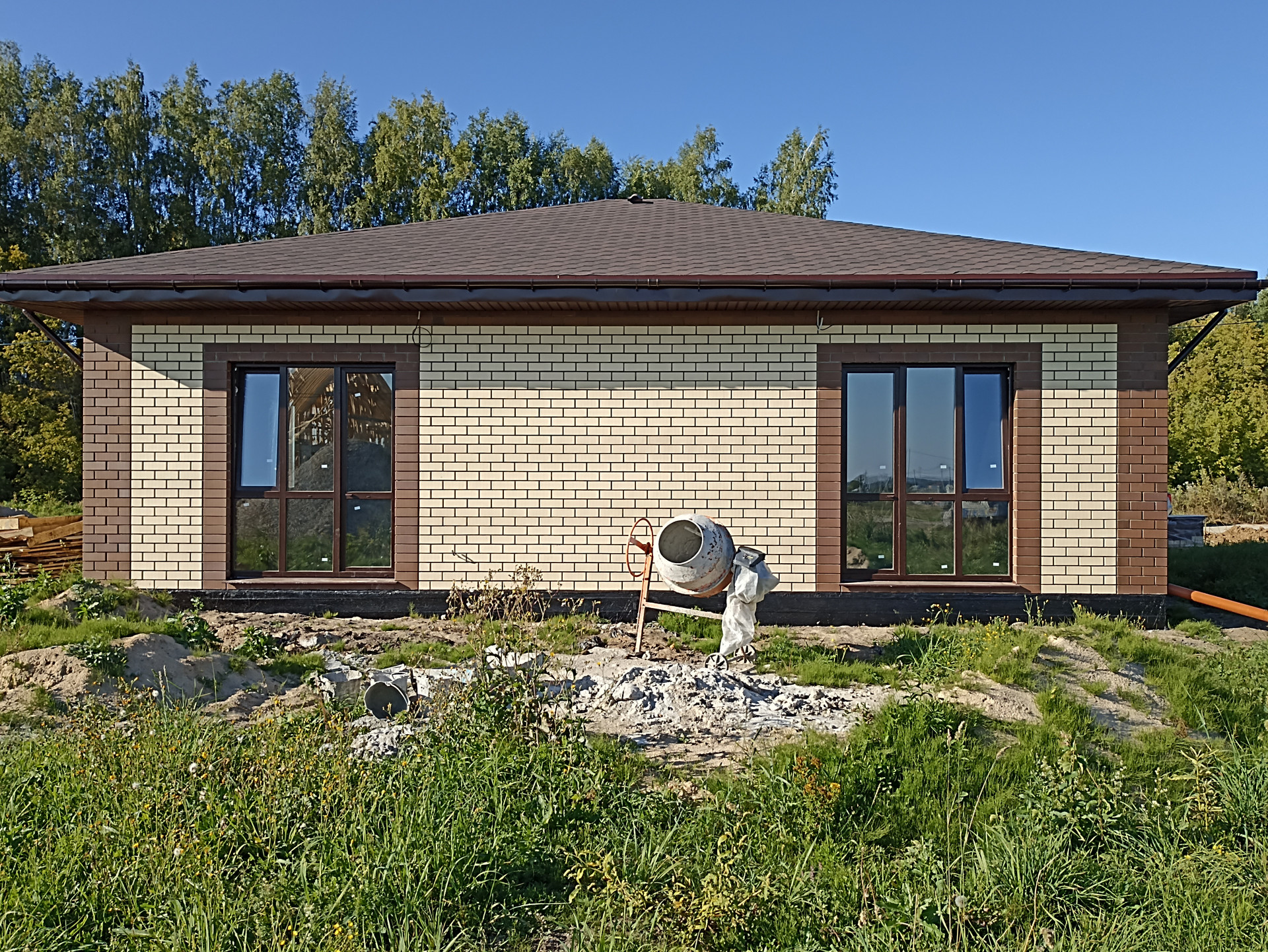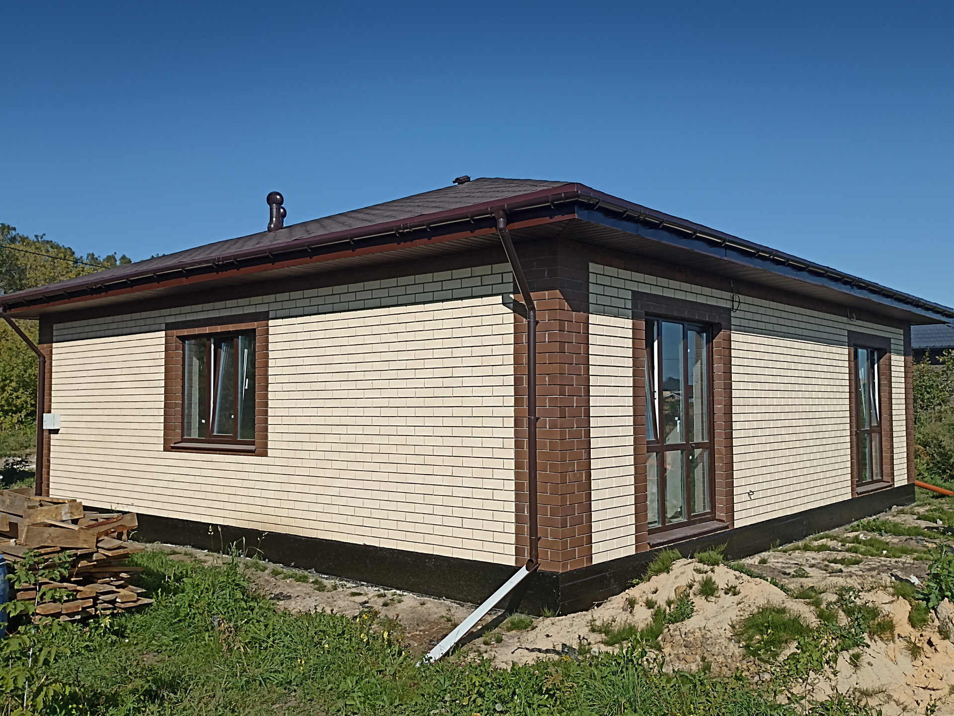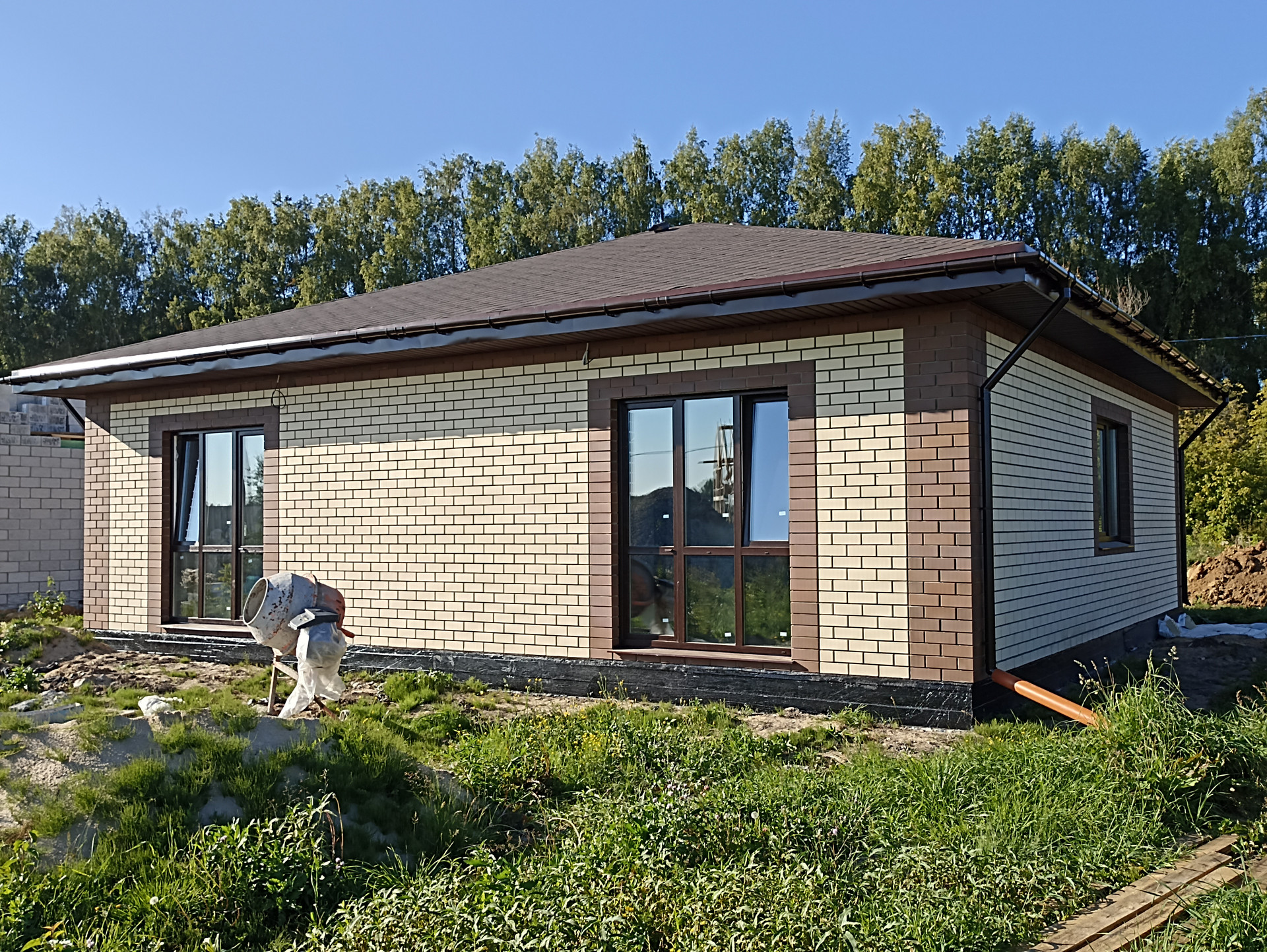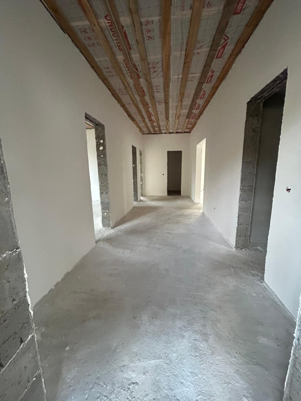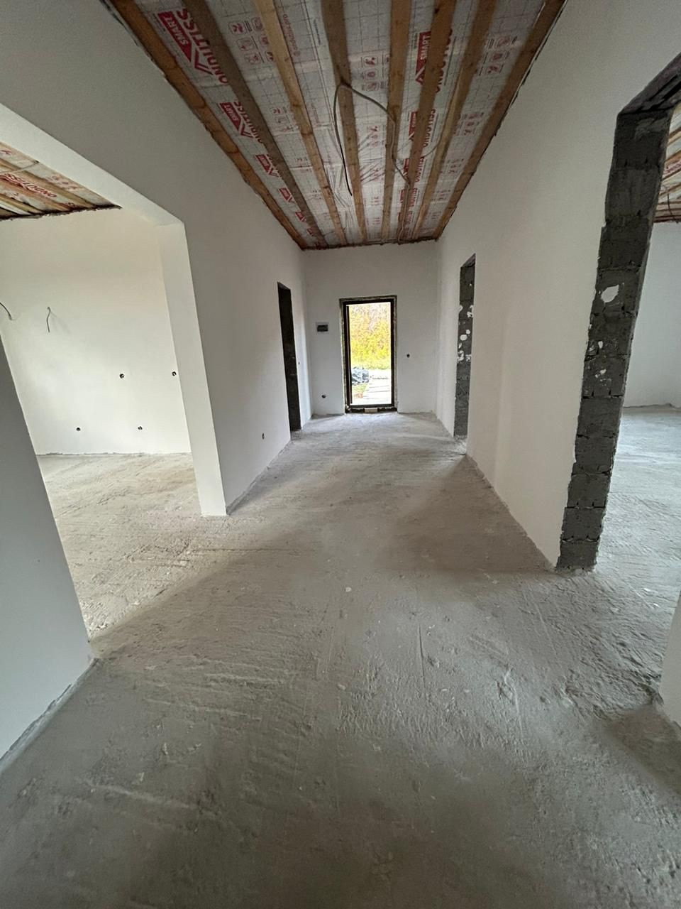 Дом построен в 2024 году. Общая площадь – 103,9кв.м. В доме просторная кухня гостиная – 27,8кв.м, две комнаты – 39,3кв.м (25,1/14,2) большую комнату возможно разделить на две, кладовая – 3,2кв.м., санузел – 9,3кв.м. Крыша покрыта мягкой черепицей, есть чердак. Стены оштукатурены, проведена внутренняя электропроводка, качественные окна ПВХ, входная дверь с терморазрывом. Вода заведена в дом, централизованная канализация, возможно провести газовое отопление. Высота пoтoлков 3 мeтpa.