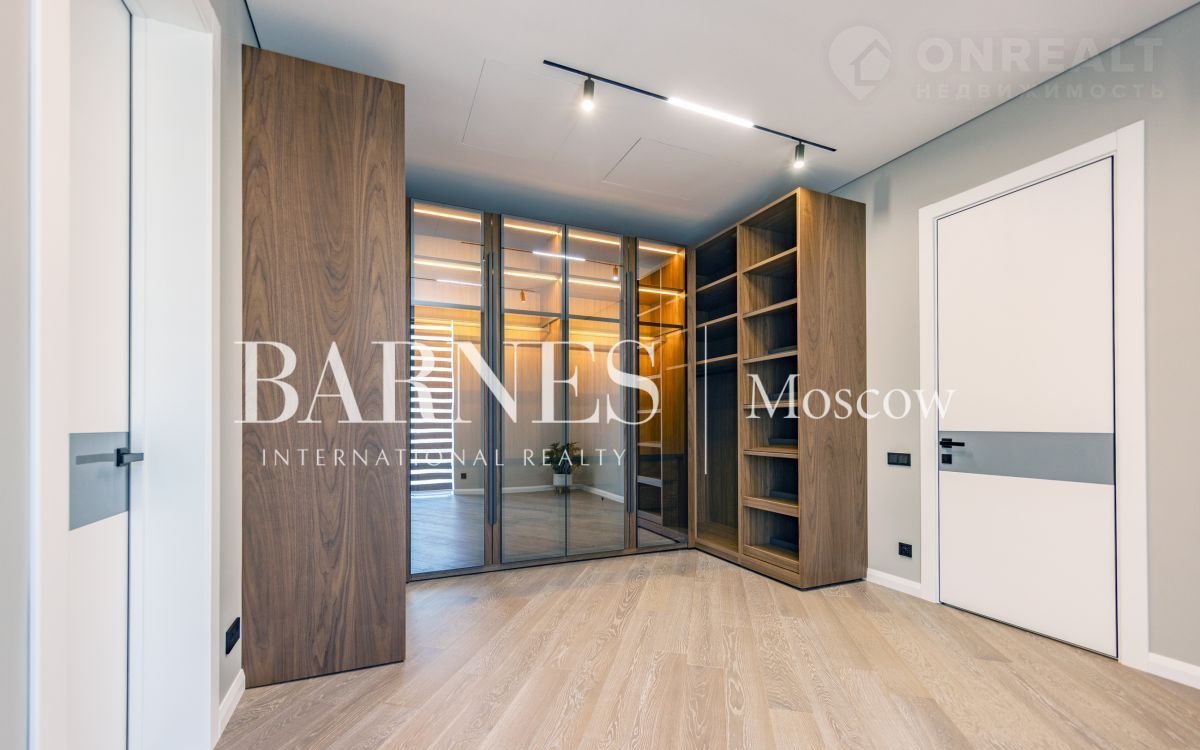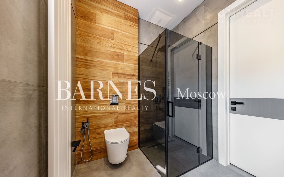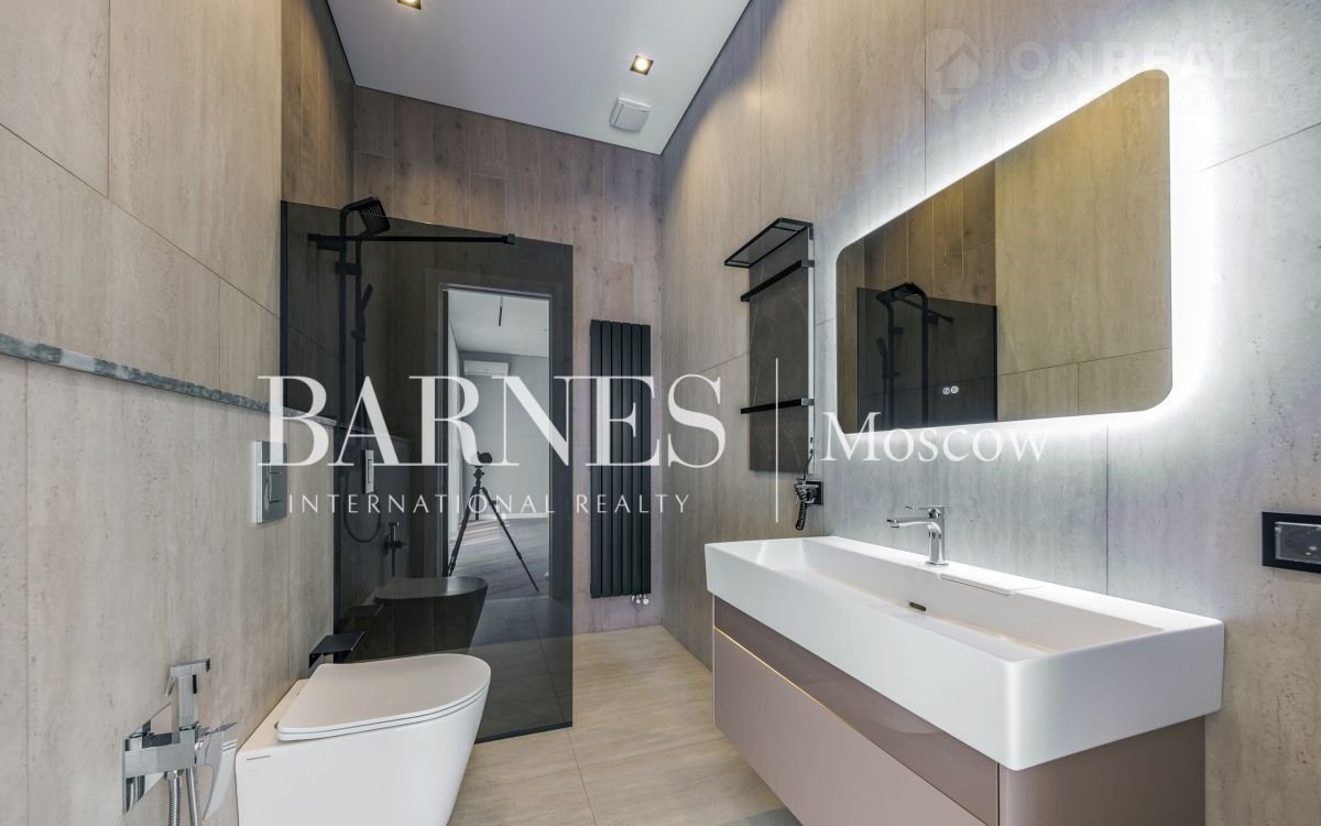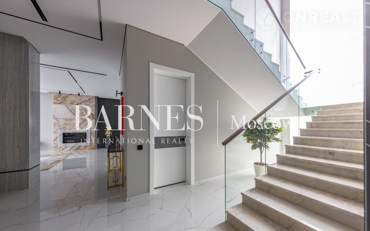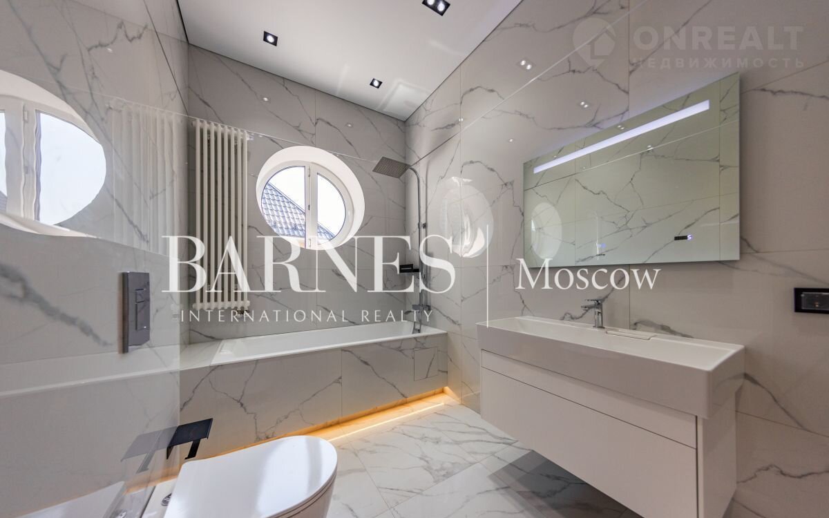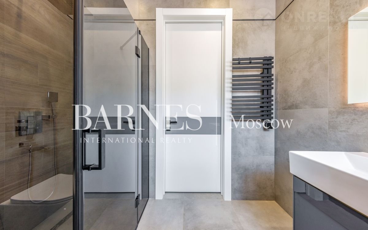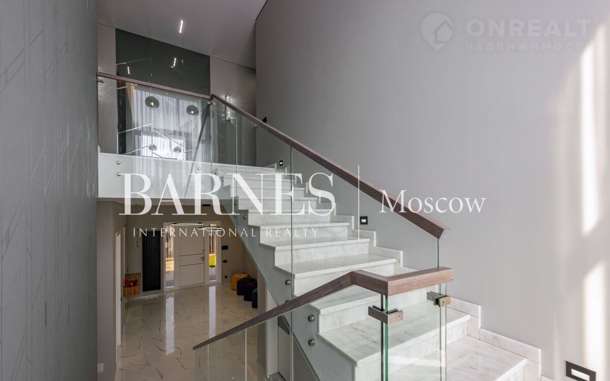 2 этаж (195 кв.м.): Холл и лестничный проем освещается большим окном h 6 м.; Мастер спальня 60 кв. м: спальня 27 кв.м. с выходом на балкон (ограждение балкона двойным стекло), Гардероб 19 кв.м., установлена гардеробная от студии Giuliа Nоvаrs; Ванная комната с окном 12,5 кв. м., просторная душевая, угловая ванна с массажем пр. В&W, каменная тумба - столешница на две раковины, подогрев пола. Сантехника - встраиваемая, спальня 31 кв. м. + с/у 7 кв. м. установлена ванна 1800мм; спальня 18,5 кв. м., собственная ванная комната 6 кв. м., гардеробная 5 кв. м.; Кабинет 28,6 кв. м. гардеробная зонирована стеклянной перегородкой; Постирочная с мебелью 10 кв. м установлены стиральная и сушильная машины пр. АSКО.
