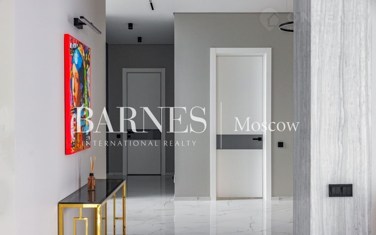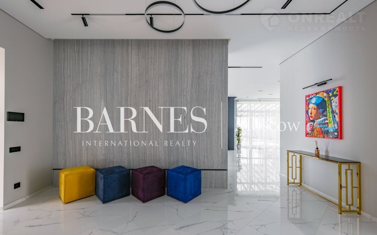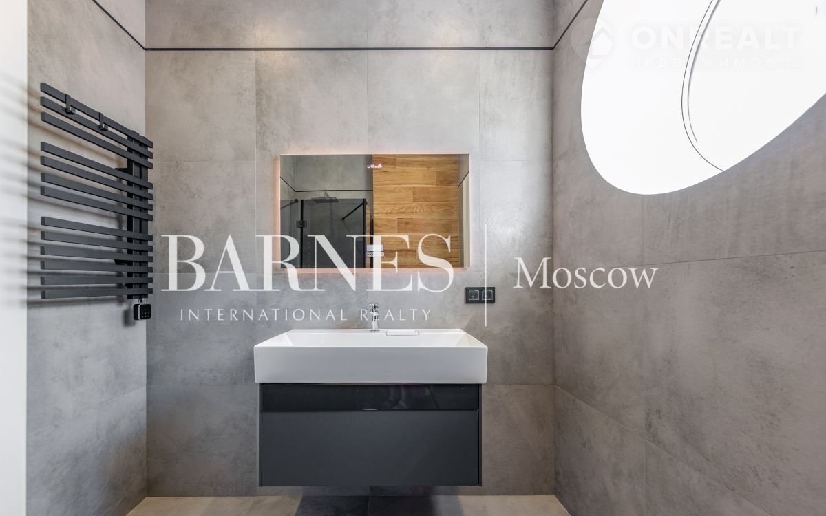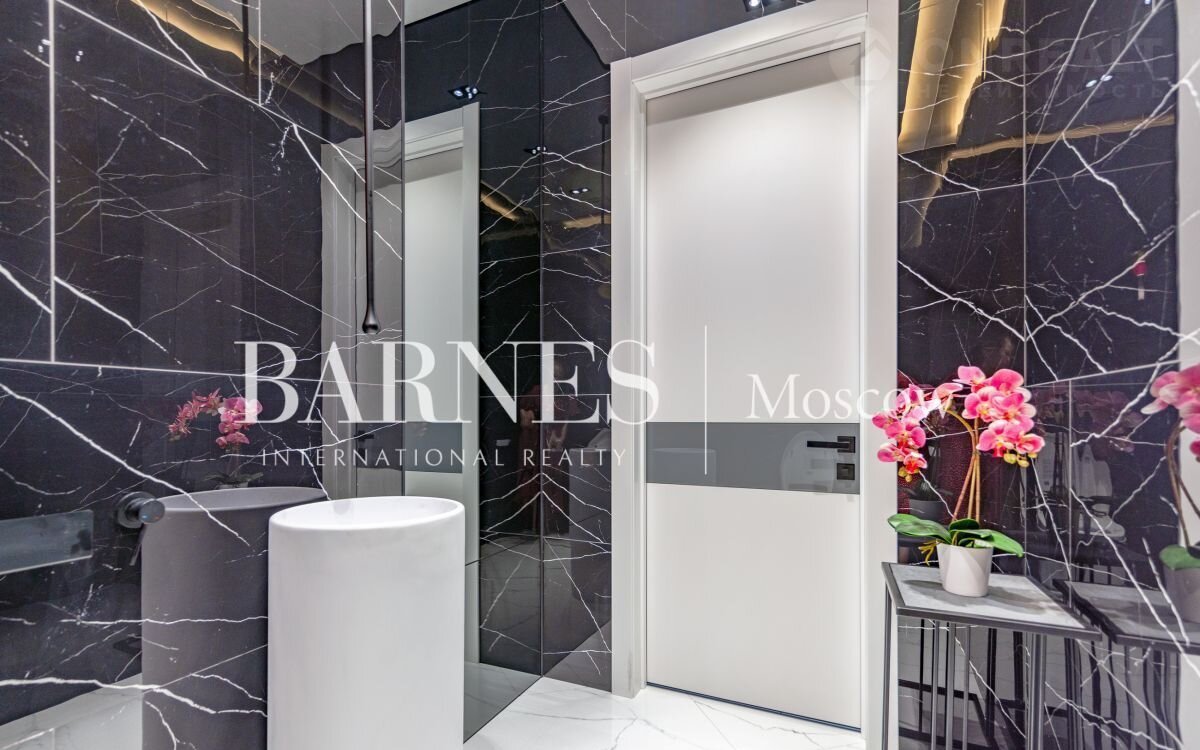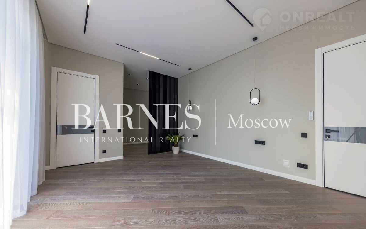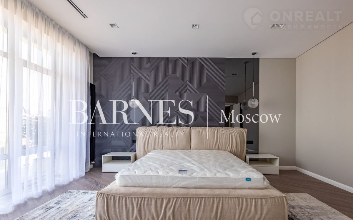2 этаж (195 кв.м.): Холл и лестничный проем освещается большим окном h 6 м.; Мастер спальня 60 кв. м: спальня 27 кв.м. с выходом на балкон (ограждение балкона двойным стекло), Гардероб 19 кв.м., установлена гардеробная от студии Giuliа Nоvаrs; Ванная комната с окном 12,5 кв. м., просторная душевая, угловая ванна с массажем пр. В&W, каменная тумба - столешница на две раковины, подогрев пола. Сантехника - встраиваемая, спальня 31 кв. м. + с/у 7 кв. м. установлена ванна 1800мм; спальня 18,5 кв. м., собственная ванная комната 6 кв. м., гардеробная 5 кв. м.; Кабинет 28,6 кв. м. гардеробная зонирована стеклянной перегородкой; Постирочная с мебелью 10 кв. м установлены стиральная и сушильная машины пр. АSКО.