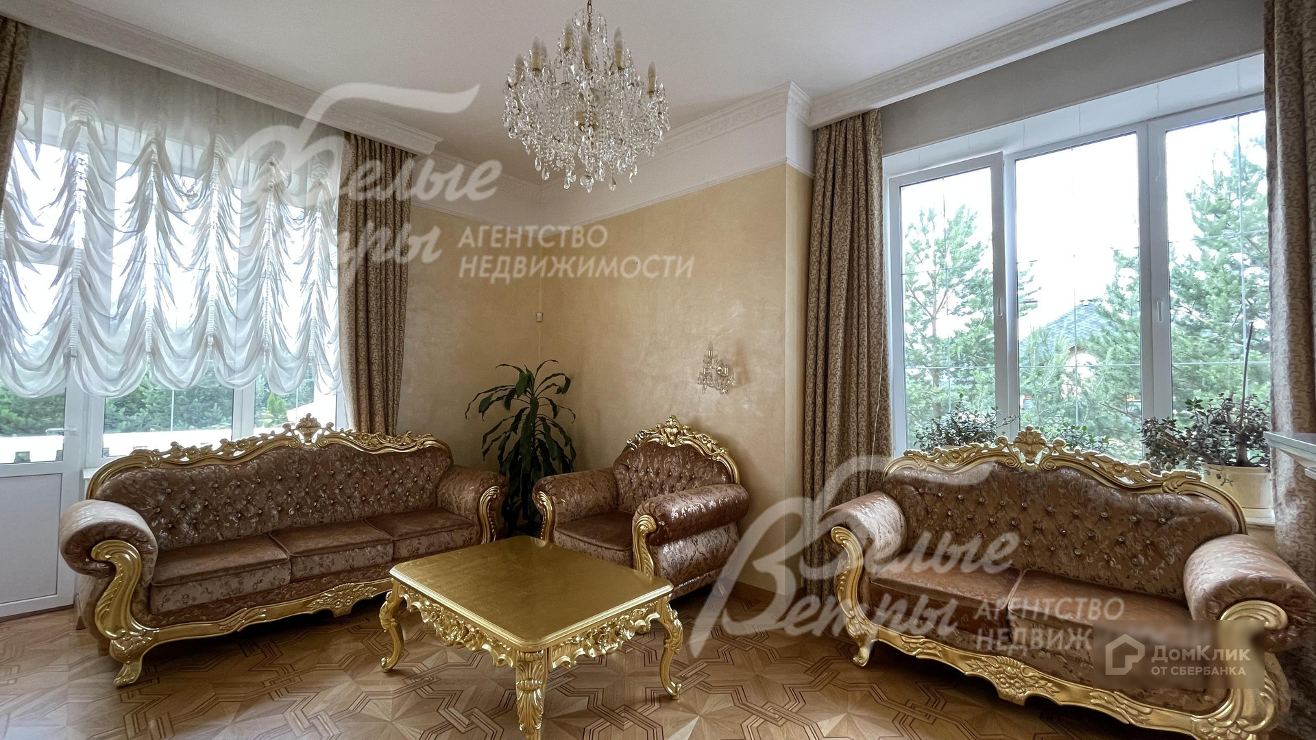 Мебель, оборудование: кухонный гарнитур в классическом стиле: филенчатые фасады из массива дерева, сливочного цвета, с резными элементами, фурнитура - фарфор с латунью, столешница из камня, имеется вся необходимая встроенная кухонная техника: распашной (двойной) холодильник LG, посудомоечная машина Bosch, кофемашина, электрический чайник, микроволновка. В комплекте к кухне - раздвижной кухонный стол с 6 стульями из той же коллекции. Стиральная машина - 2 шт. с сушкой, ТВ 3 шт. В наличии имеется вся необходимая мебель: в гостиной 2 мягких дивана, в холле расположен большой шкаф, в спальнях - двуспальные кровати, тумбы, шкафы. Имеются различного рода декоративные люстры, светильники, тюль, классические французские шторы..