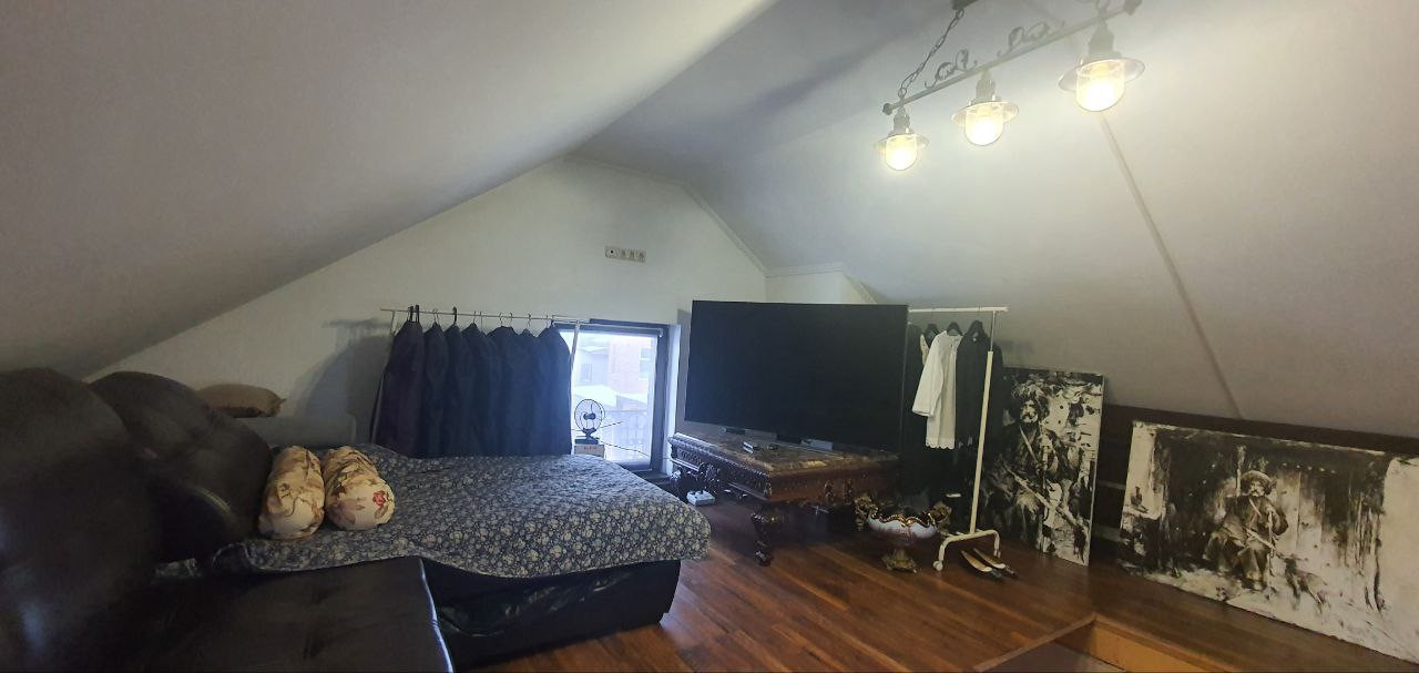 -третий этаж: мансарда- одно большое пространство с большим количеством встроенных зон для хранения.