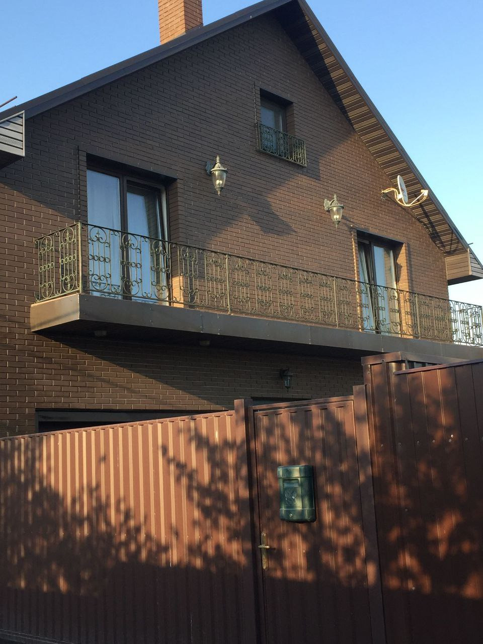 Два этажа и мансарда, перекрытия ж/б плиты, крыша утеплена, покрыта металлочерепицей.