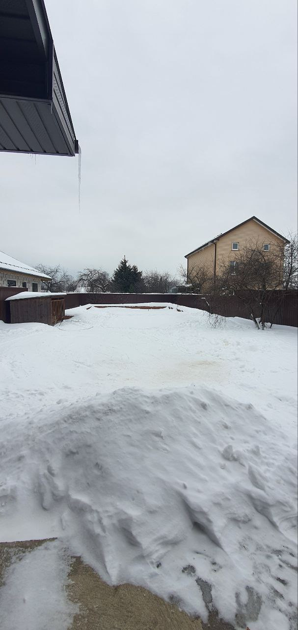 Участок правильной прямоугольной формы, не имеет уклона, огорожен забором. На участке есть еще фундамент 10х14 для второго дома.