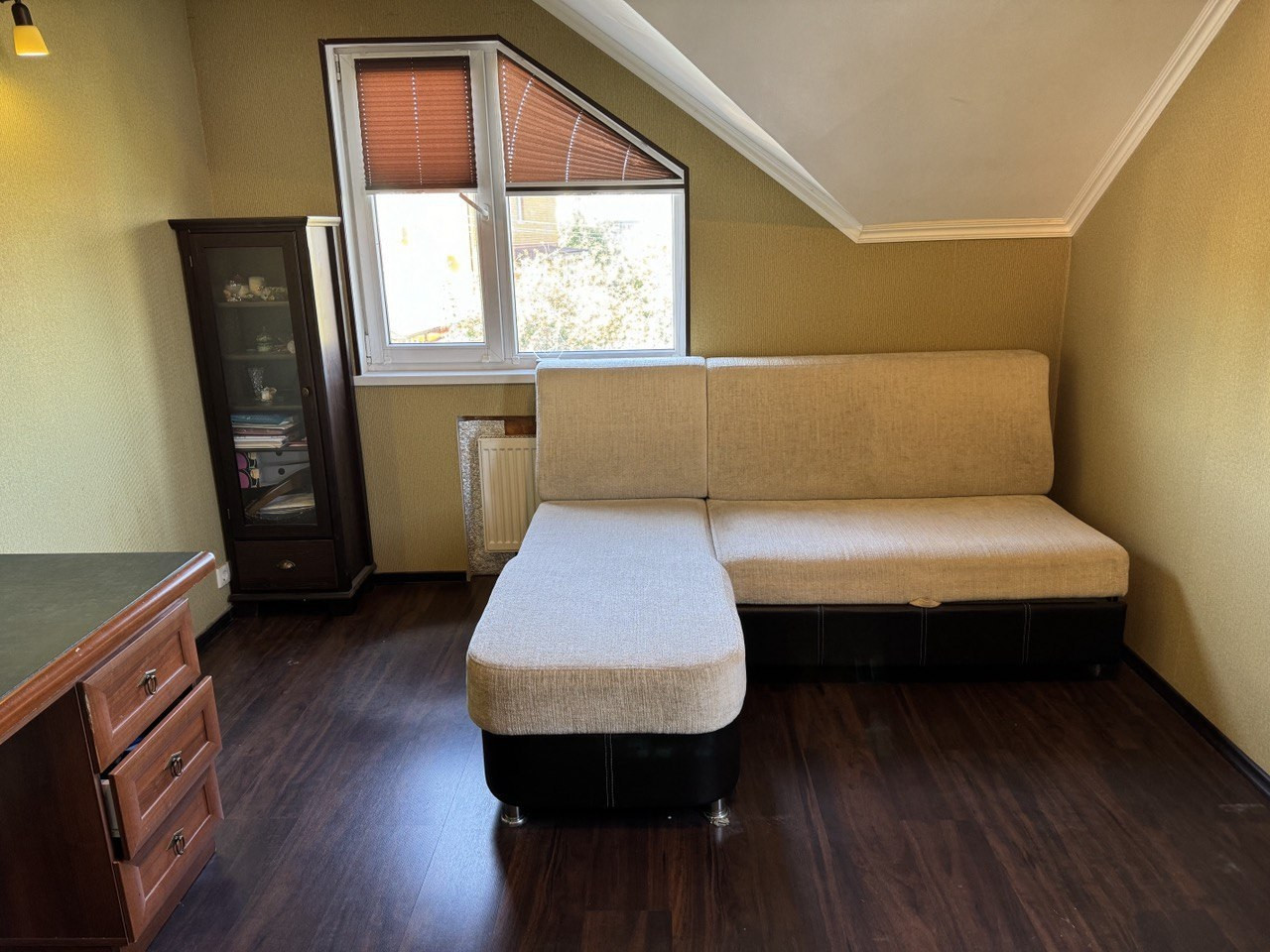 1й этаж: кухня-гостиная, комната, санузел, прихожая.