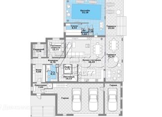№020984 Цоколь: постирочная, с/у, кладовая, спальня с гардеробной, зона SPA: массажная зона, сауна, джакузи, кладовая, котельная 1 этаж: холл, зона отдыха, каминный зал со вторым светом, зимний сад, кухня-столовая с выходом на просторную веранду, спальня с с/у, с/у, гардеробная, барная стойка, гараж на 2 м/м 2 этаж: спальня с с/у, гардеробной комнато... |