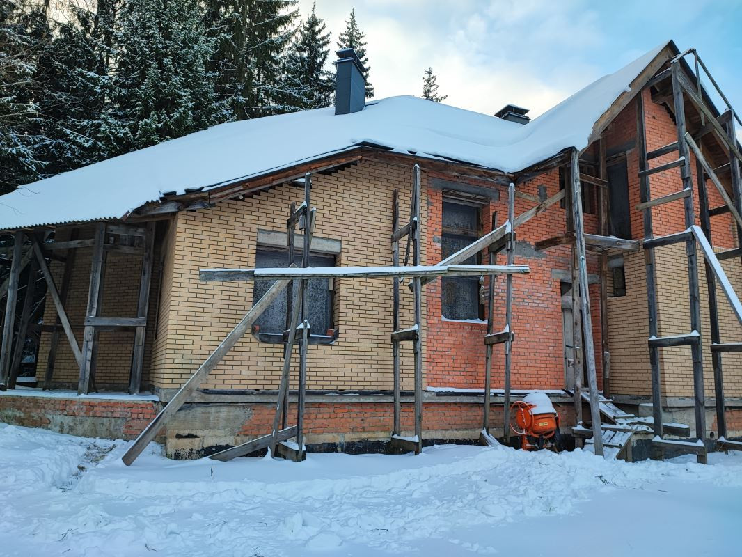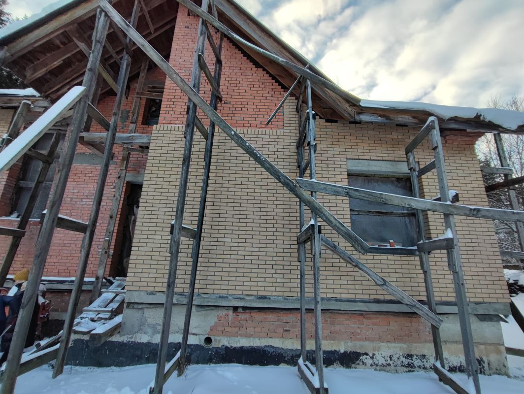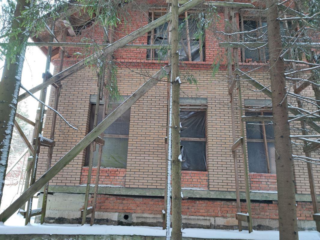 Коттедж без внутренней отделки и фасадного остекления. Проект коттеджа – в подарок  покупателю.