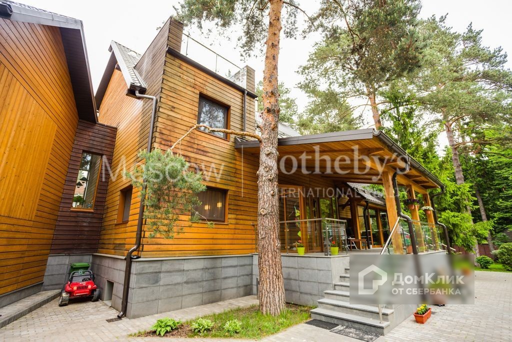 Трехэтажный дом построенный по индивидуальному проекту архитектурной группой "Рудаков и Архитекторы" из натуральных экологически чистых материалов: кирпич и пеножелезобетон, кровля металлочерепица, фасад дома отделан деревом лиственницы, цоколь облицован керамогранитом. На лесном участке сделан дренаж, уличное освещение, проложены прогулочные дорожки, высокопрофессиональный ландшафтный дизайн, который включает в себя автоматический полив, на участке расположена беседка BBQ.