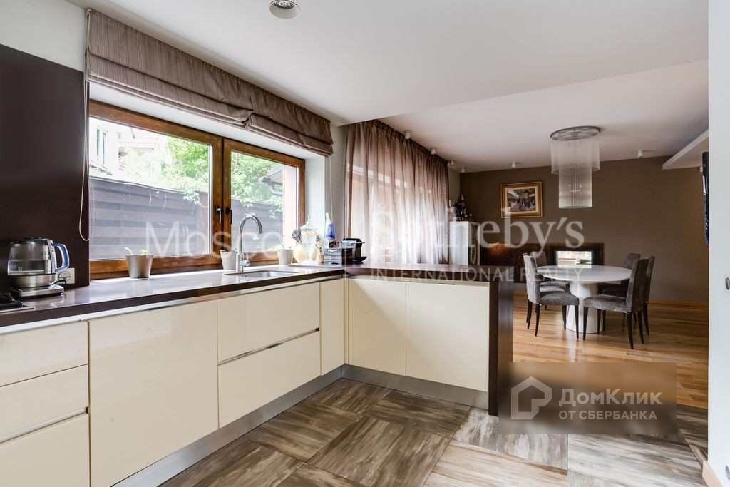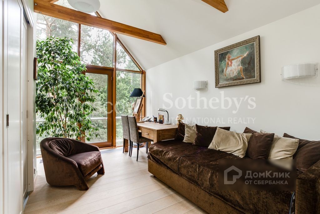 В озеленении участка использованы: экзотические хвойные деревья (туи, сосны, можжевельники и др.), газон, различные декоративные кустарники, и многолетние растения и цветы. Дом имеет 4 уровня: Цоколь и 3 жилых этажа, в планировке предусмотрены 5 спален, гостиная с камином, кухня - столовая, 2 комнаты отдыха, 3 ванных комнаты и три санузла отдельно, терраса, гараж на 2 машино-места, с мансарды выход на уютный балкон. Для персонала предусмотрена двухкомнатная квартира в отдельном флигеле дома. На цокольном этаже расположен небольшой СПА комплекс состоящий из бассейна с противотоком, выложенным итальянской мозаикой, сауны из канадского кедра и комнаты отдыха. Фактурные элементы отделки и интерьер выполнены художниками и декораторами, 1 этаж и лестница - массив дуба, мебель Minotti и Meridiani, кухня Skavolini оборудована посудомоечной машиной, кофемашиной, духовкой и холодильной и морозильной камерами. Сантехника Huppe, мебель в санузлах Borge.