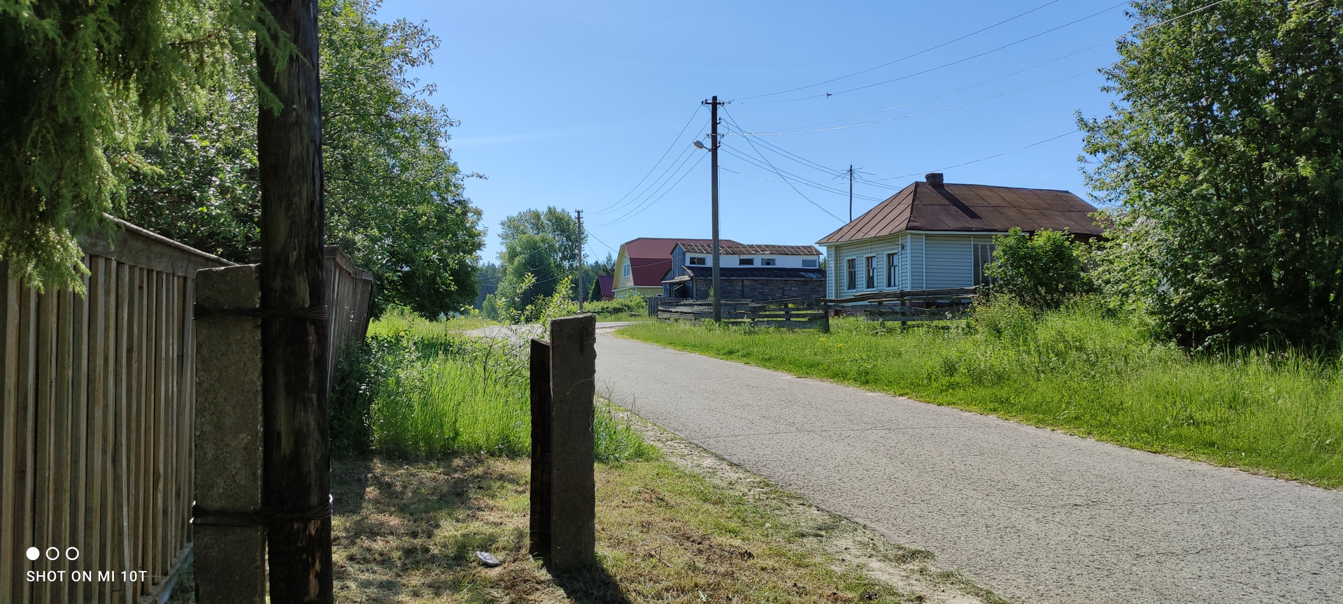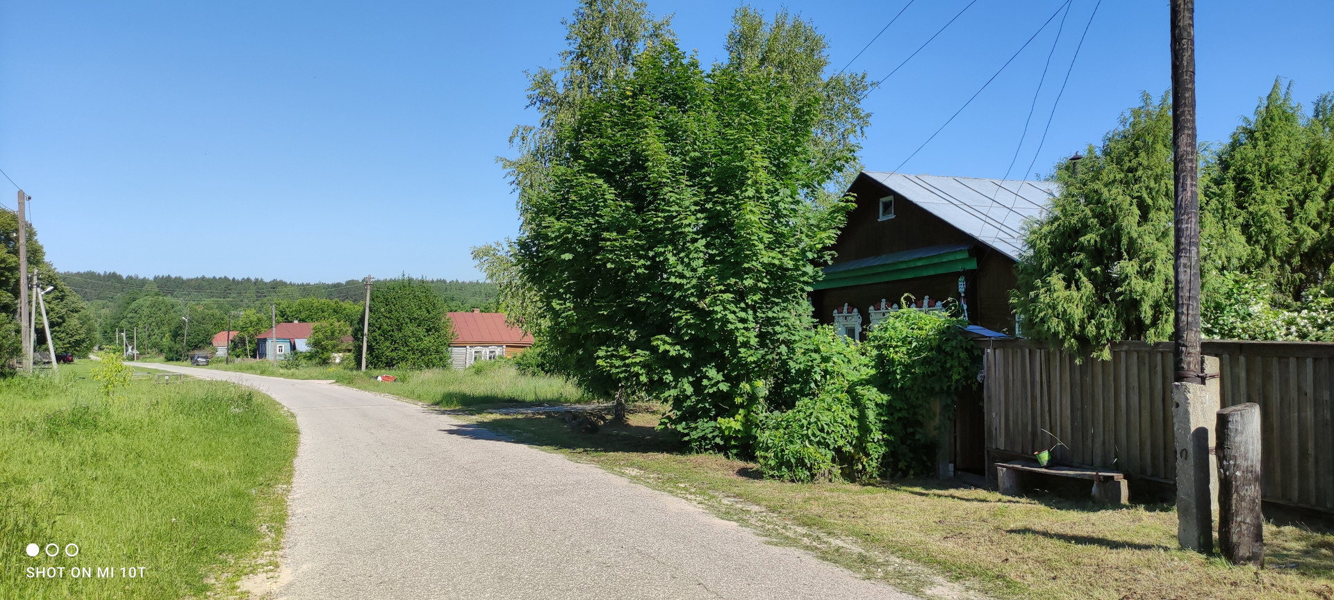 Дом стоит на возвышенности. К дому подходит хорошая асфальтированная дорога.