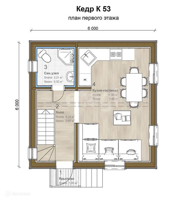 Общая площадь 53 м2