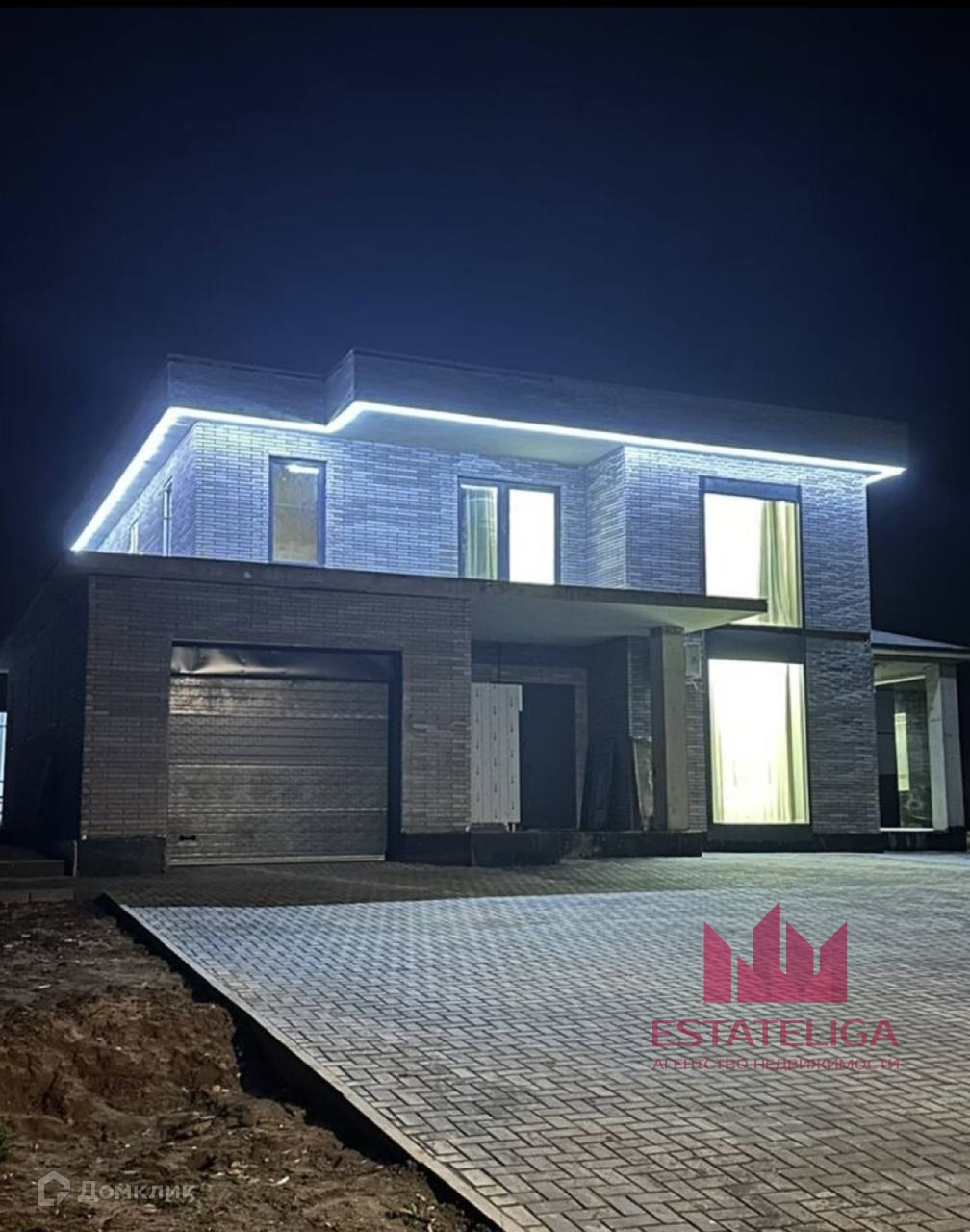 Дом монолитный, толщина стен 40 см, плоская кровля. К дому пристроен гараж с выходом из гаража в дом.