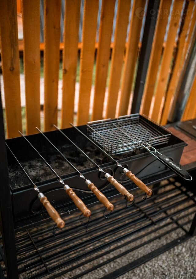 Для тех кто любит пожарить мясо, есть мангал с шампурами и решеткой