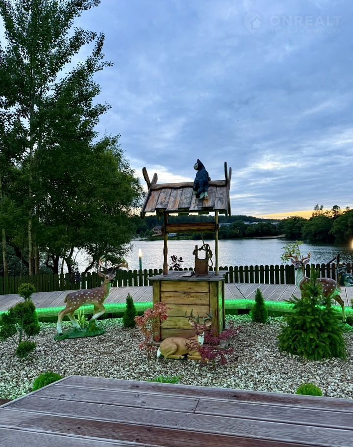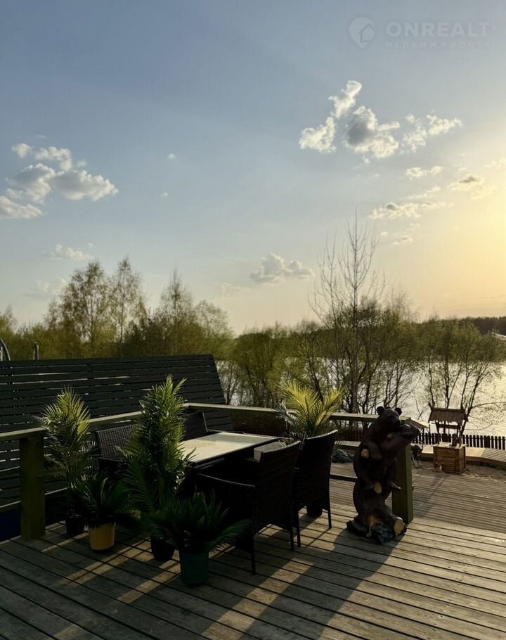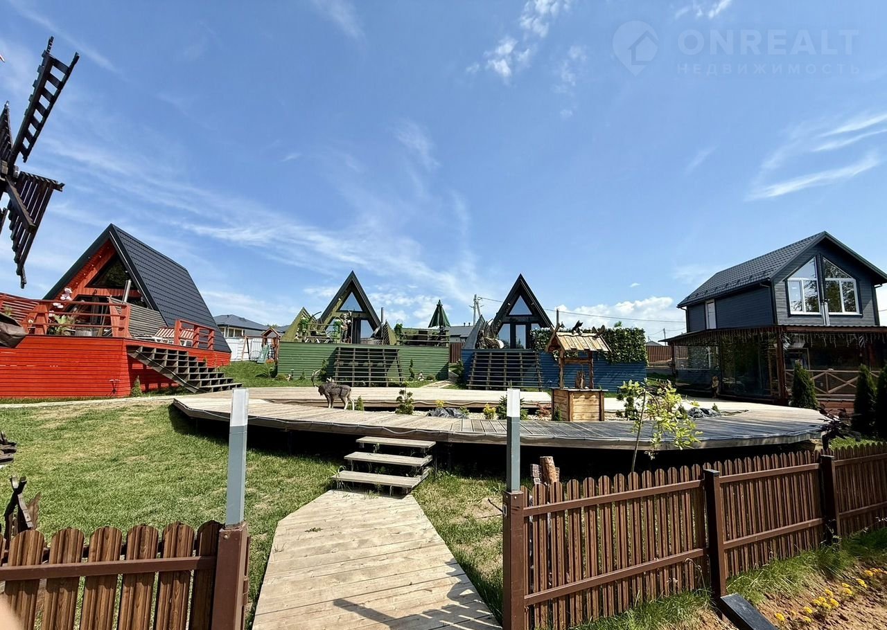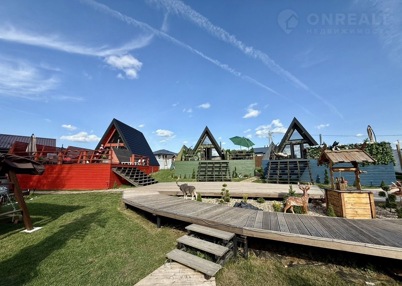 На территории: баня с террасой (вмещает до 8 человек), зоны для приготовления барбекю, костровое место, детская площадка, качели с видом на реку, подвесные кресла-качели у каждого дома, настольные игры, шезлонги, прямой выход к реке с пирсом и беседкой.