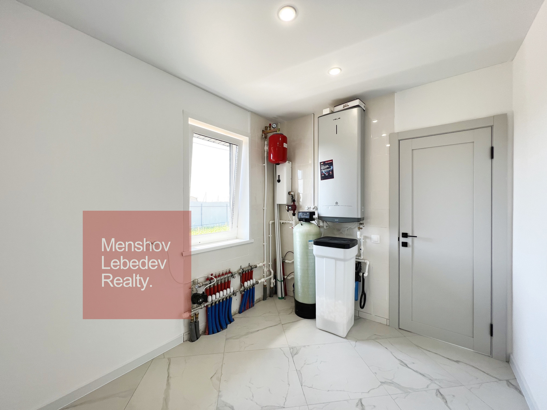 По всей площади дома теплый пол, установленные напольные конвектора при выходе на террасы.