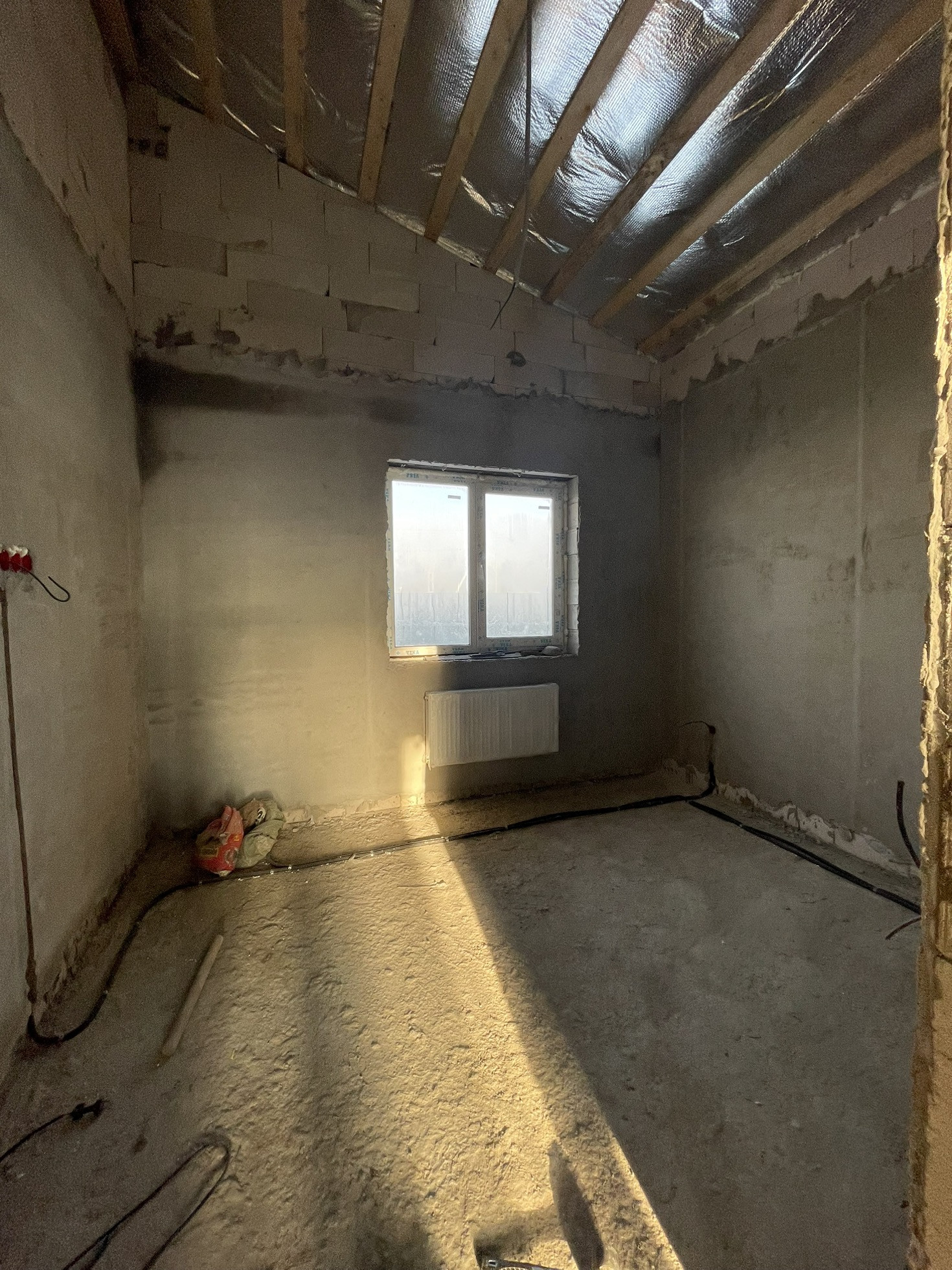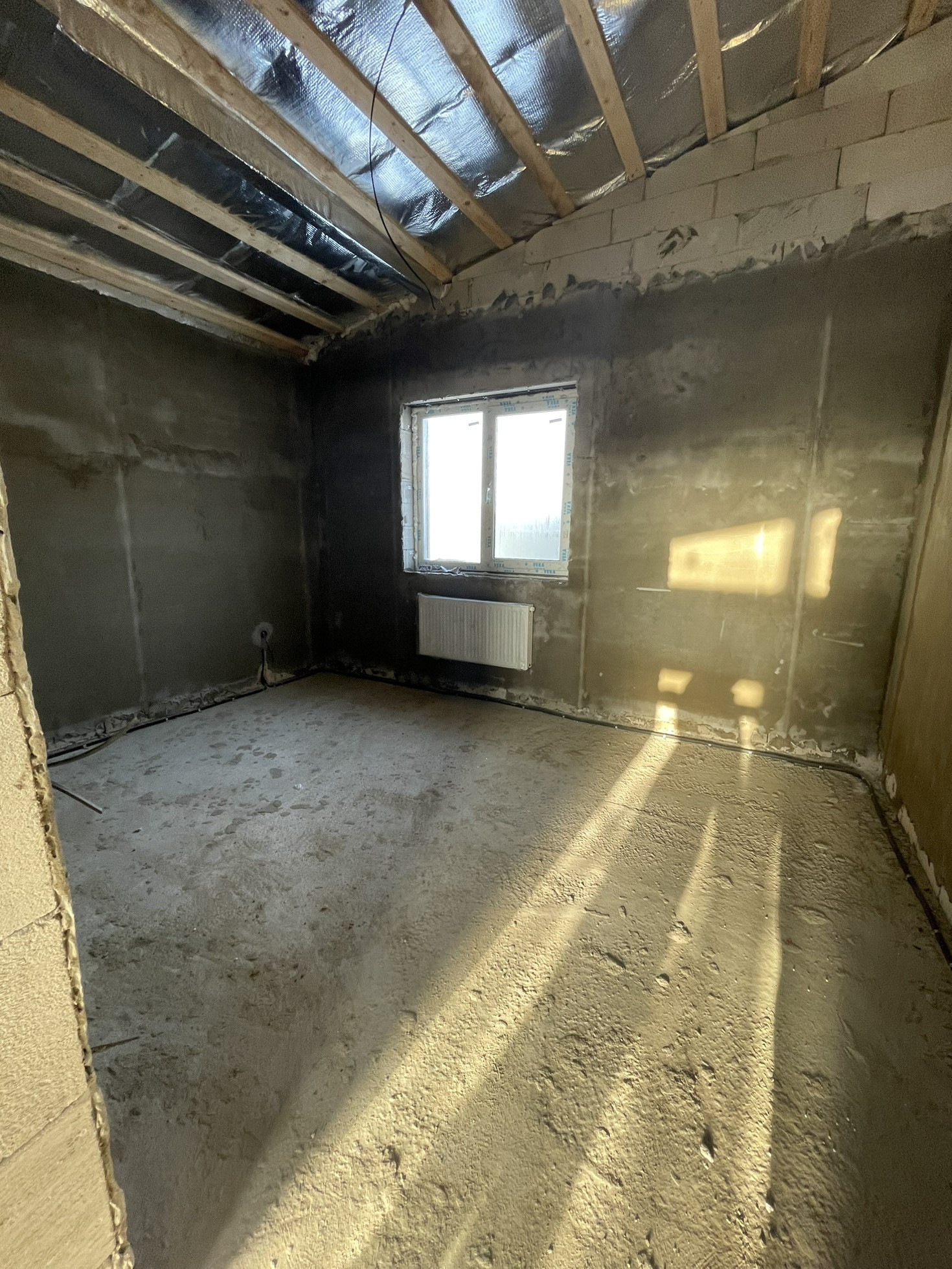 Построен из газасиликатных блоков, толщина 300мм.;