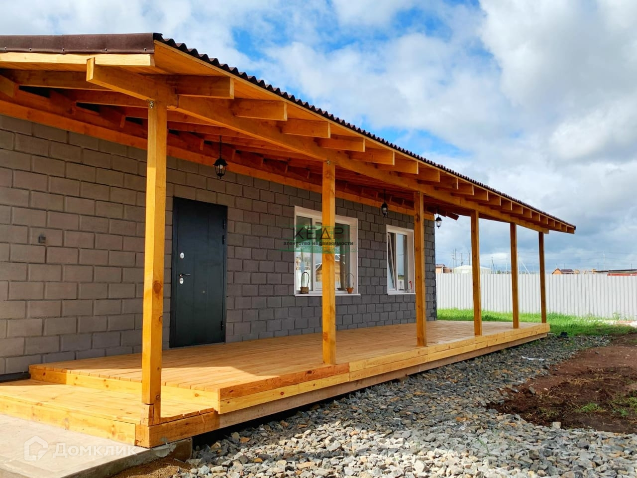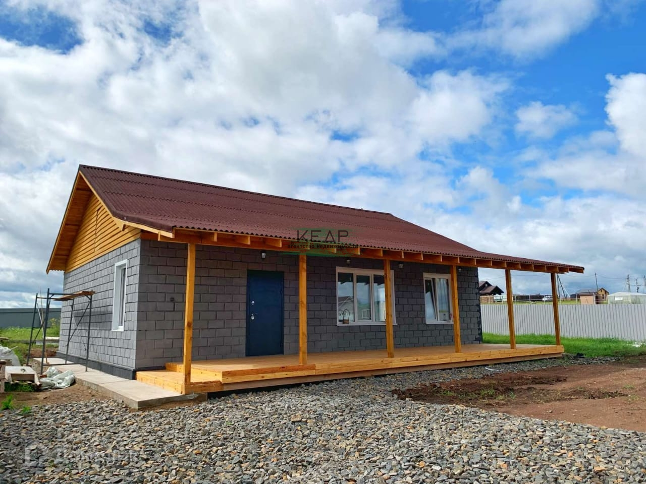 Дом изготовлен из теплоблоков (на сегодняшний день это самый теплый блочный материал). Терраса 30 кв.м. В доме расположены три отдельные комнаты, просторная кухня-гостиная, совмещенный санузел, тех. комната, прихожая.