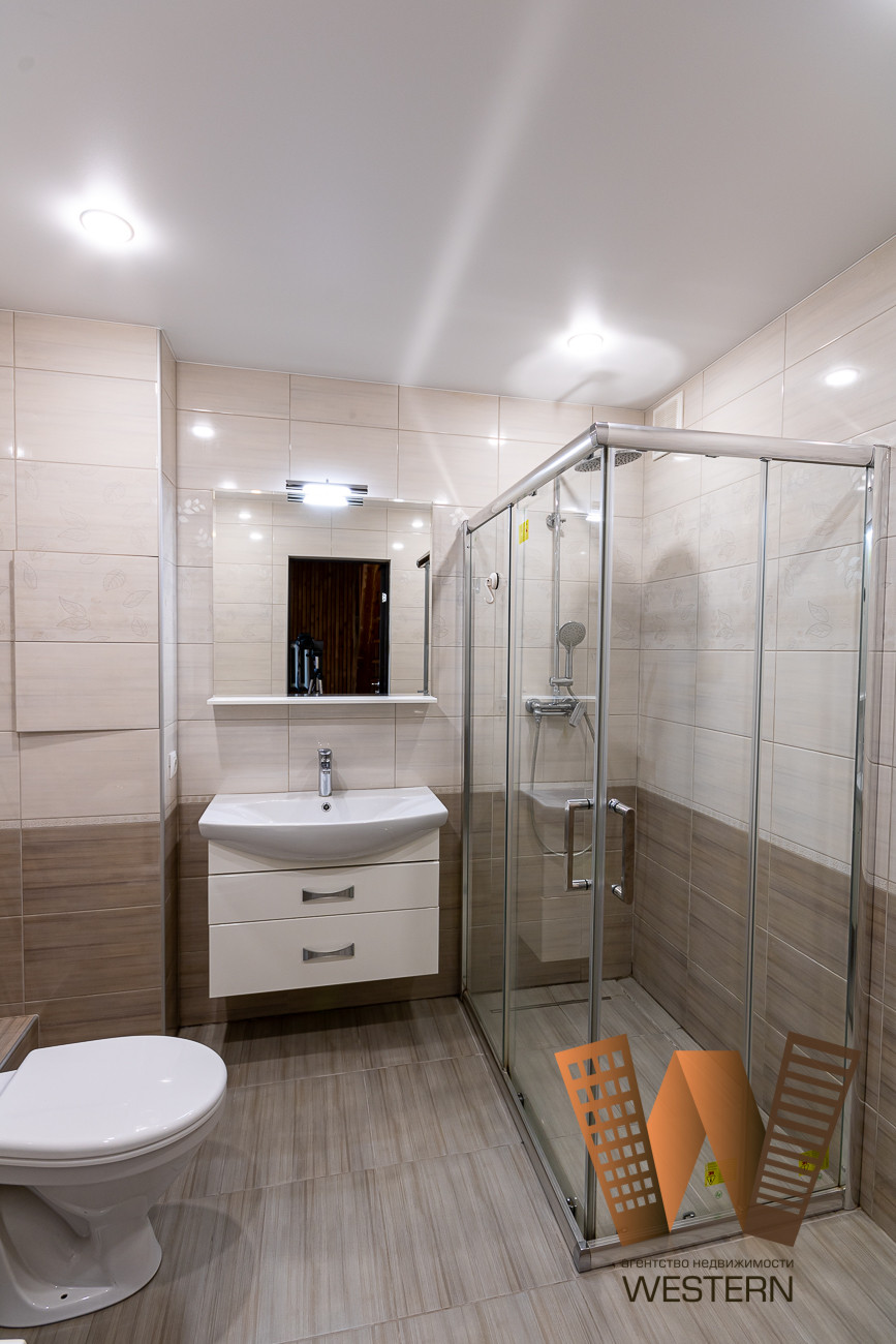 Залита стяжка установлен теплый пол, пол из керамогранита. Сделана перепланировка не несущих конструкций, сделана большая кухня – гостиная с возможностью установить камин, осуществлен перенос мокрой точки на новое место, где расположена сейчас кухня. Где была расположена ранее кухня, комната разделена стеной и получились 2 комнаты заместо одной, данное решение можно как оставить, так и демонтировать стену. На первом этаже есть погреб и выход в гараж. Сан узел был раздельный, было решено его совместить, в санузле полностью сделан ремонт.