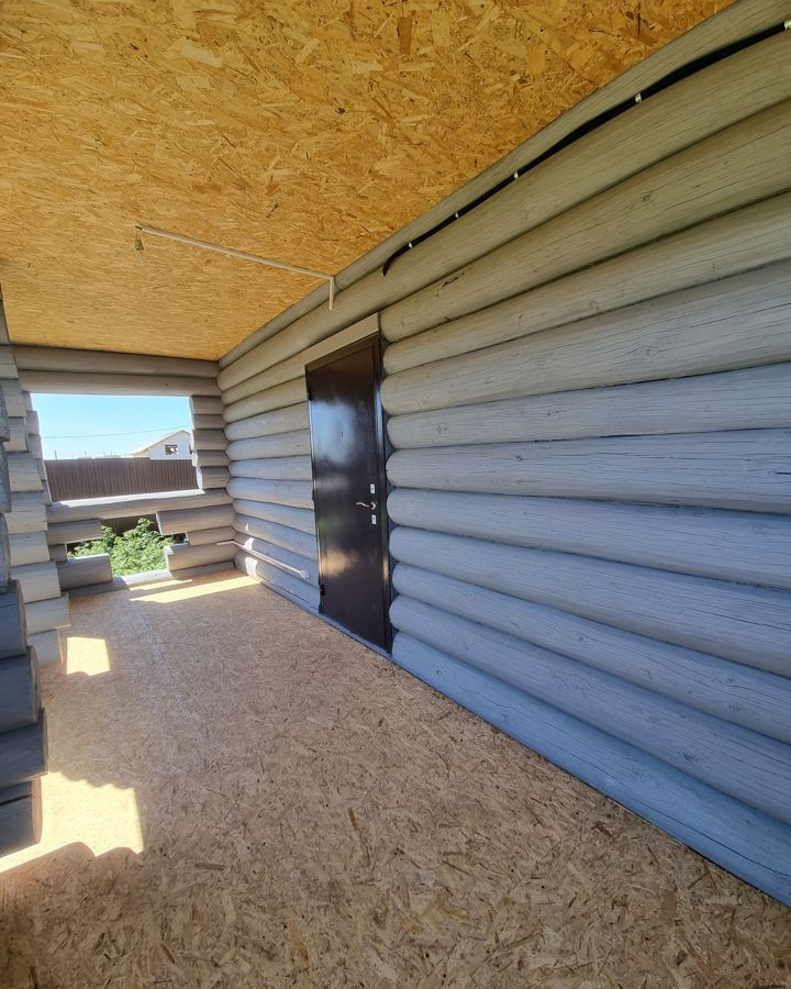 Фундамент - железобетонный, ленточный; Стены - бревно, обработаны защитными составами и окрашены краской, углы декорированы панелями под кладку из кирпича (клинкер); Кровля - металлочерепица Монтеррей, водосточная система и система снегозадержания Grandline; Окна - с ПВХ переплётом и с двухкамерным остеклением; Внутренняя отделка: Пол 1-го этажа - керамогранит под ламинат; Пол 2-го этажа - ламинат; Стены обработаны защитными составами и окрашены; Потолки - 1-го и 2-го этажа OSB;