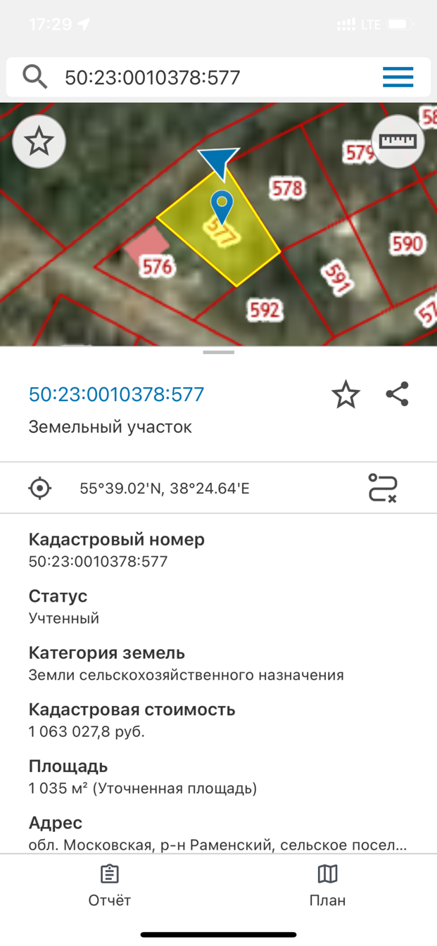 Участок правильной формы с кадастровым номером 50:23:0010378:577; общая площадь 10.35 кв.м.