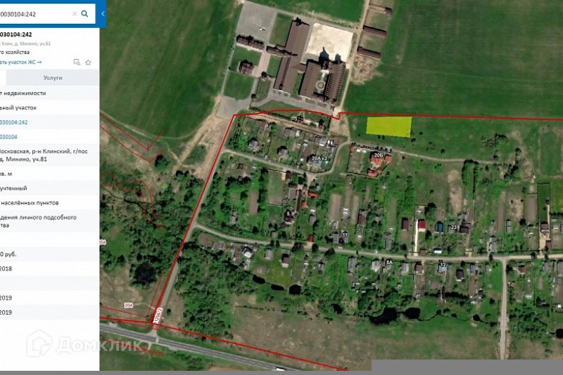 г. о. Клин, д. Минино. Продается участок 20 сот. ЛПХ. Электричество на участке 15 кВт, колодец, газ по границе. Участок в собственности.