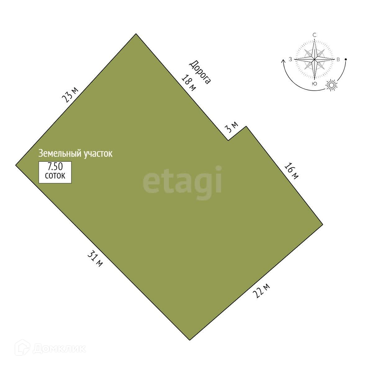 Площадь участка 7.5 сот.