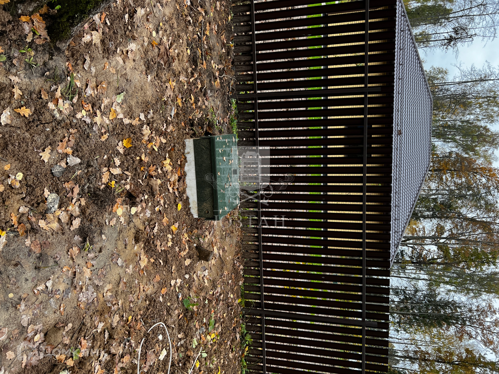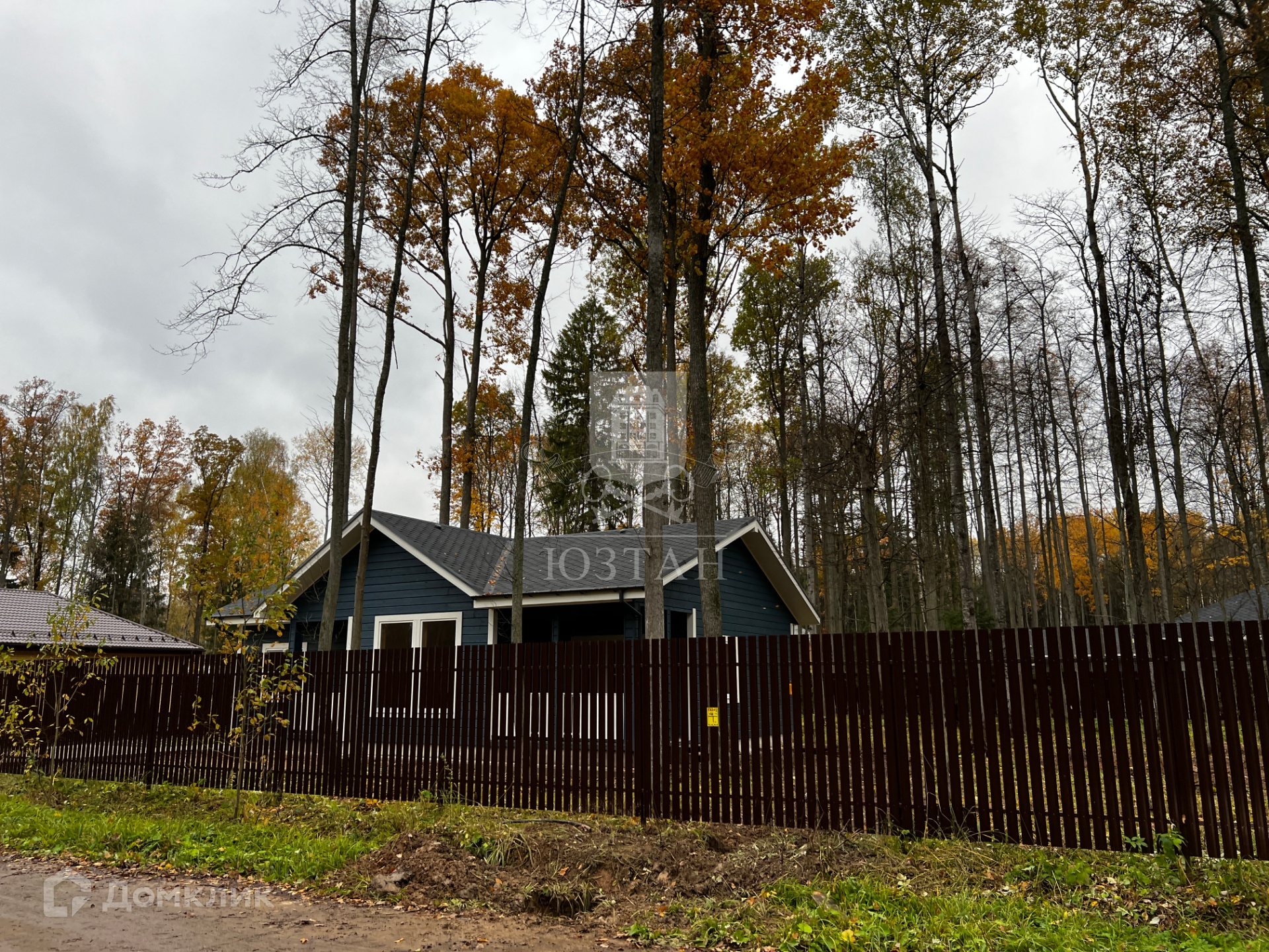 Огорожен забором по всему периметру.