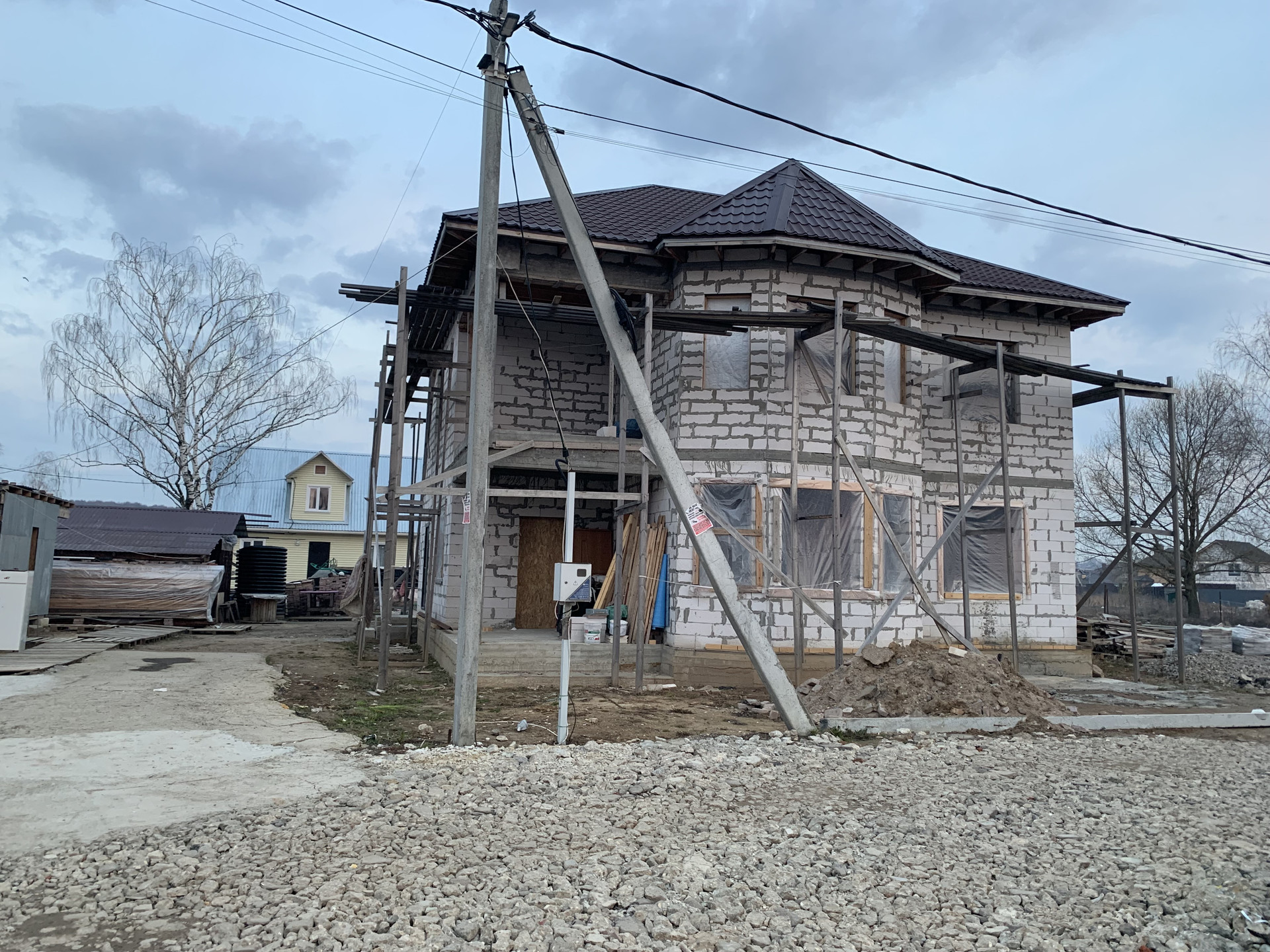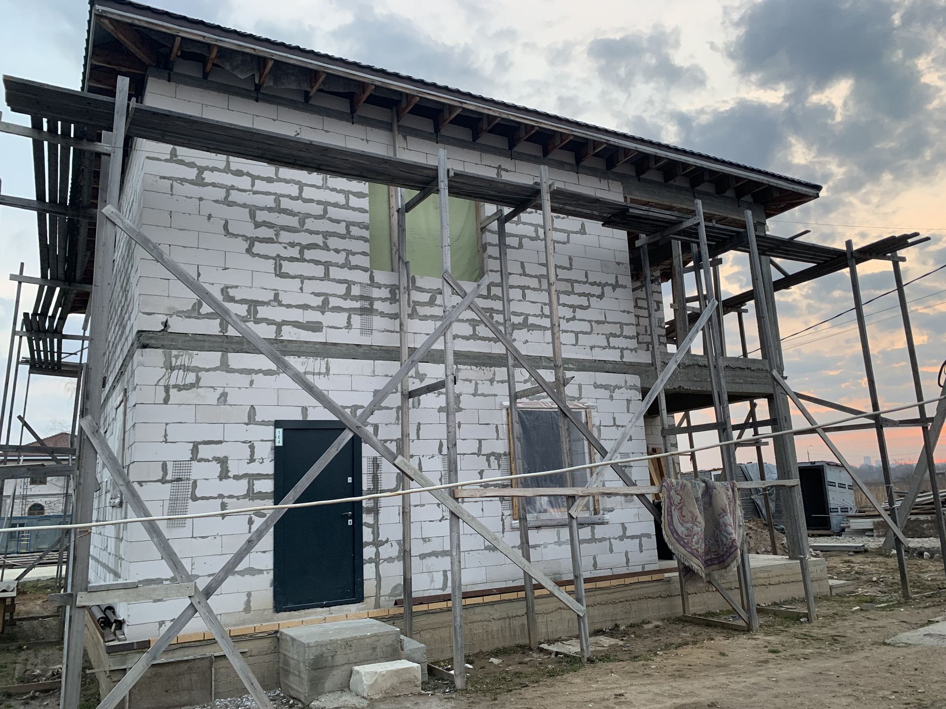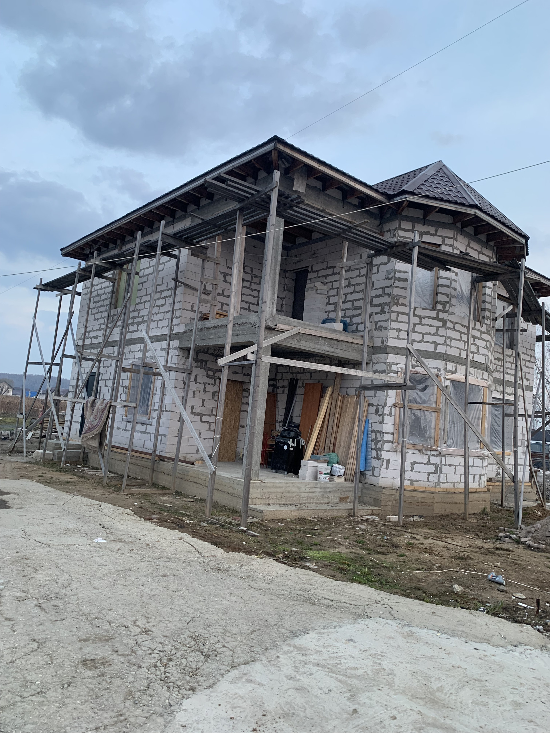 Фундамент ленточно свайный, в бойлерной имеется подвал. Санузел и на первом и на втором этажах. Лестницы литые, на второй этаж и на крышу. Крыша теплая, предполагалось сделать мансарду с парой спален и санузлом. Дом строился из качественных материалов, с внутренней стороны полностью оштукатурен (штукатурка Волма).