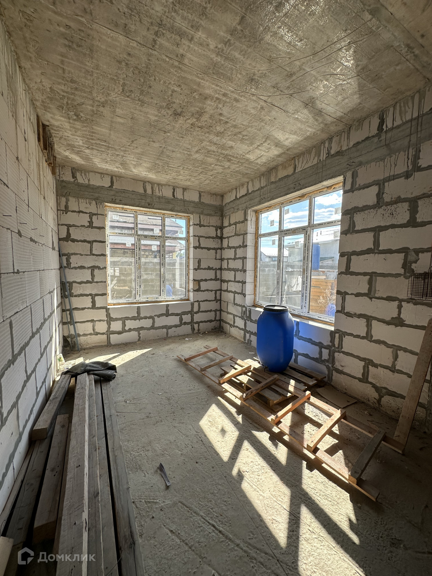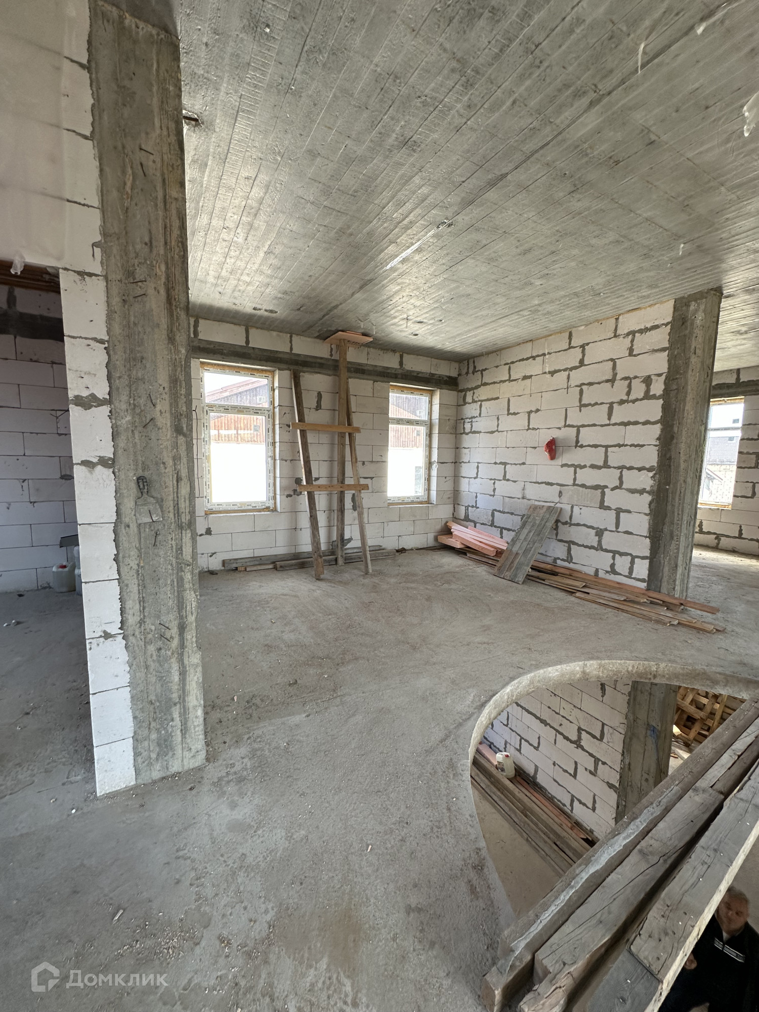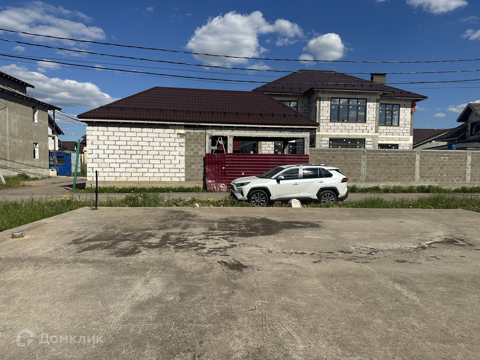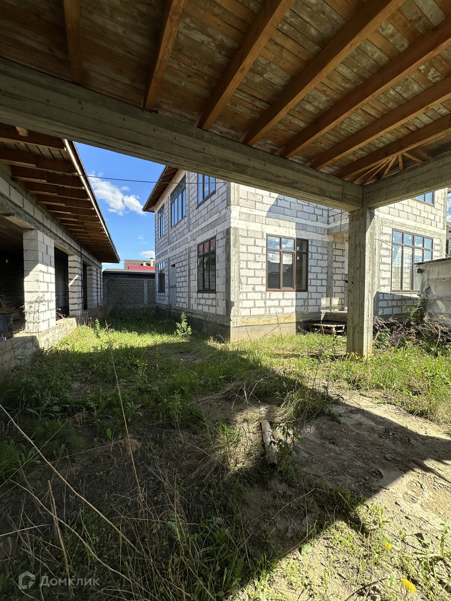 Дом построен из пенобетонных блоков. Полноценные два этажа, фундамент бетонный ленточный на сваях, пол первого этажа железобетонная плита, межэтажные перекрытия железобетонные плиты, выполнены армопояса, монолитные оконные и дверные перемычки. На 2-м этаже по планировке предполагается 4 спальные комнаты и сан. узел, на 1-м этаже 3 спальные комнаты, гостиная, кухня, сан.узел., пластиковые стеклопакеты, крыша из металлочерепицы, подведено электричество к дому, газ по границе, скважина, сам участок правильной прямоугольной формы. В поселке многие дома с круглогодичным проживанием, приличные соседи. Дом расположен в середине поселка, отдален от шумных улиц и дорог, со второго этажа открывается прекрасный вид на прилегающие территории.