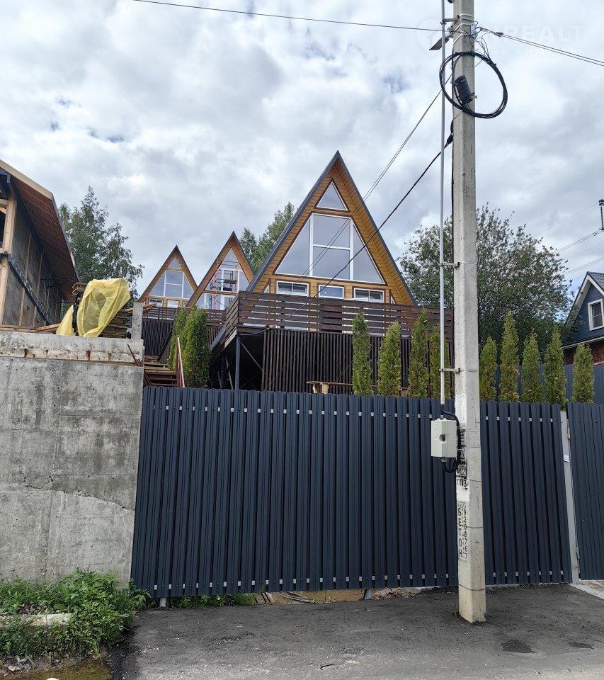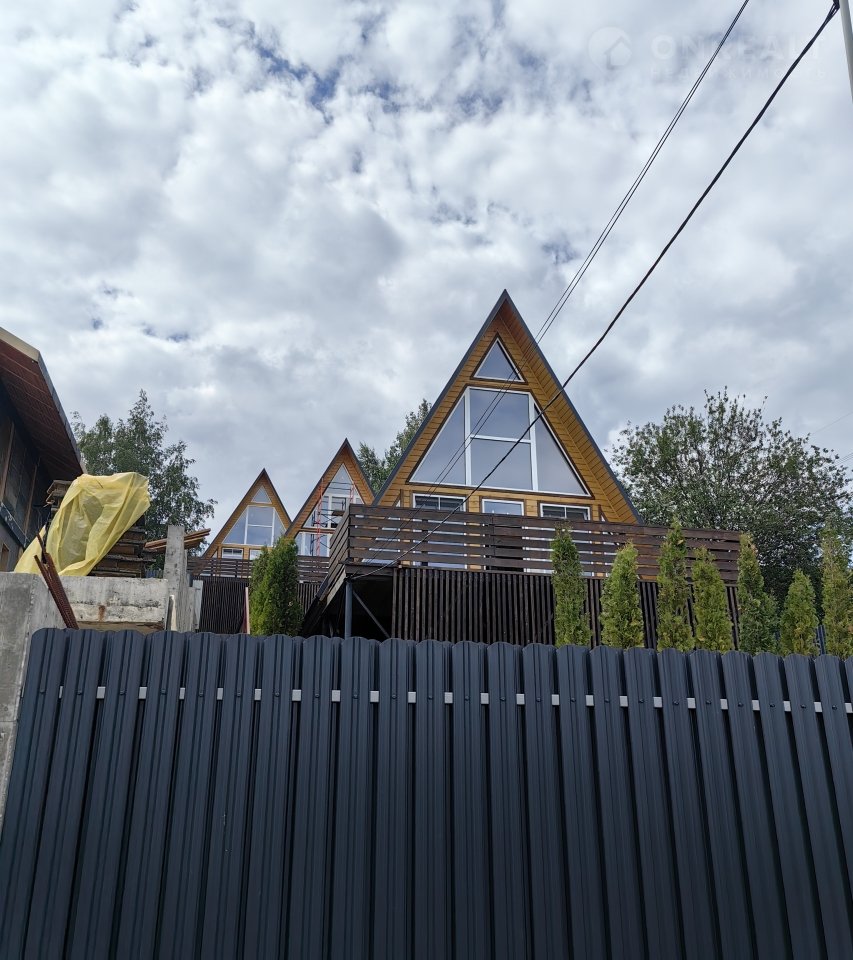 Продается три домика на одном земельном участке 9 соток. Размер домиков по 100 кв м, сделаны из бруса на каркасной основе.  Дома каркасные, утепление стены 20, пол 25. Фундамент свайный. Крыша фальц. Делались для круглогодичной аренды. Рассматривался как бизнес. Всё для проживания имеется. В домике 2 комнаты, одна большой холл на первом этаже, а на втором большая спальня.  В проекте бассейн перед нижним домиком.