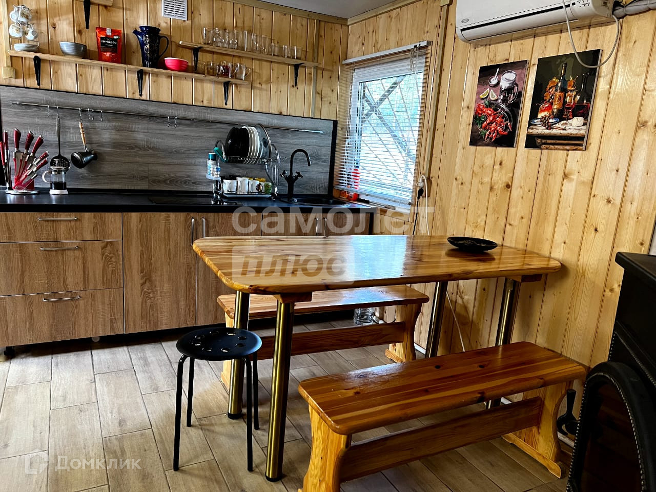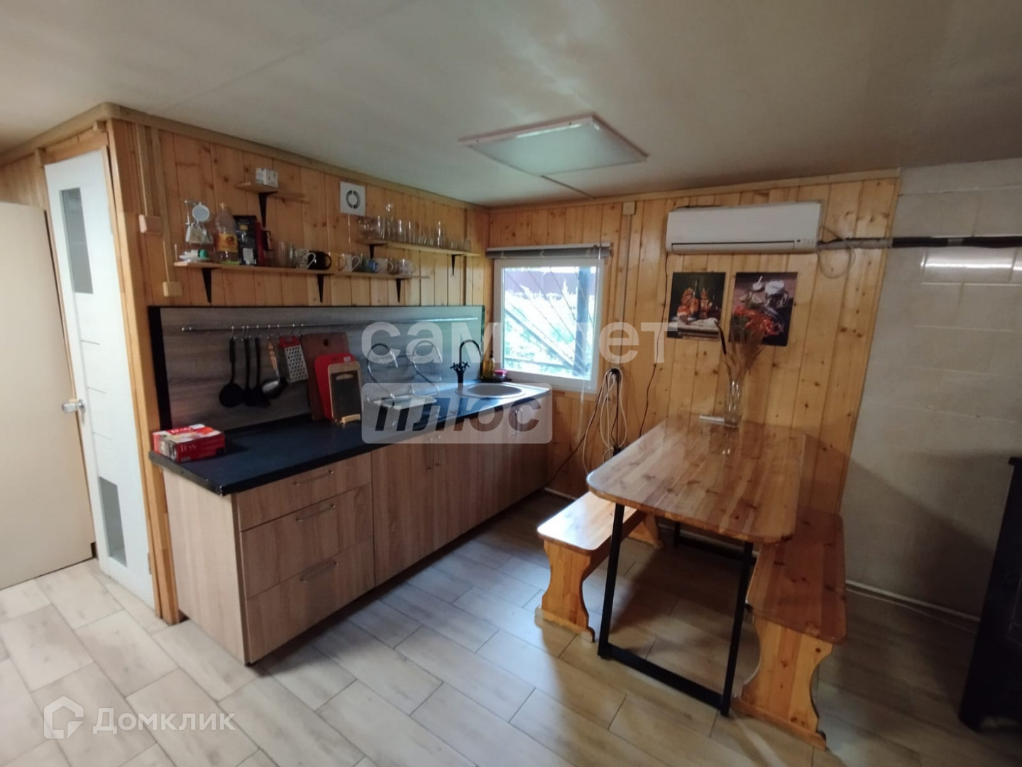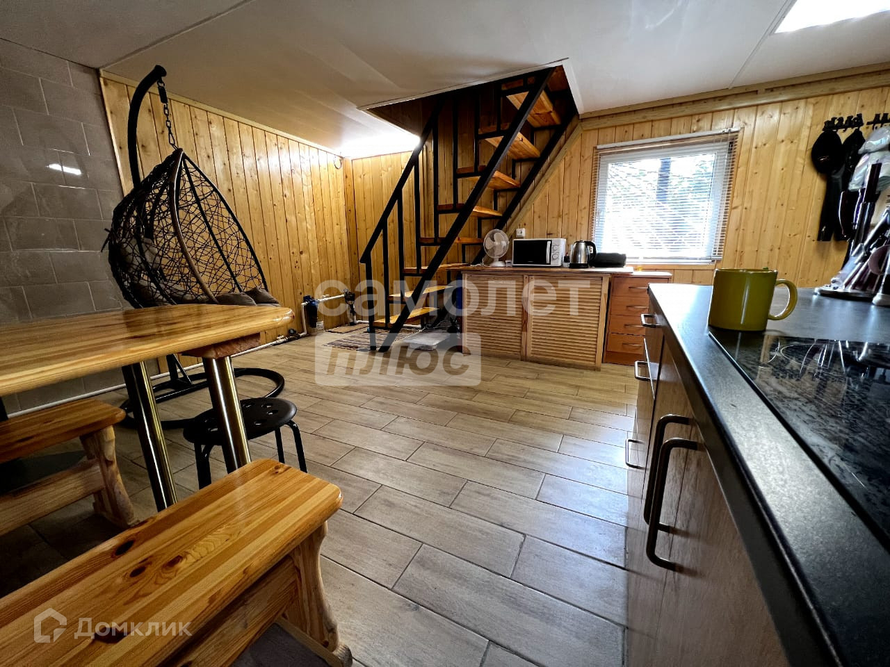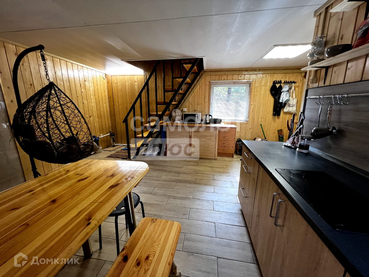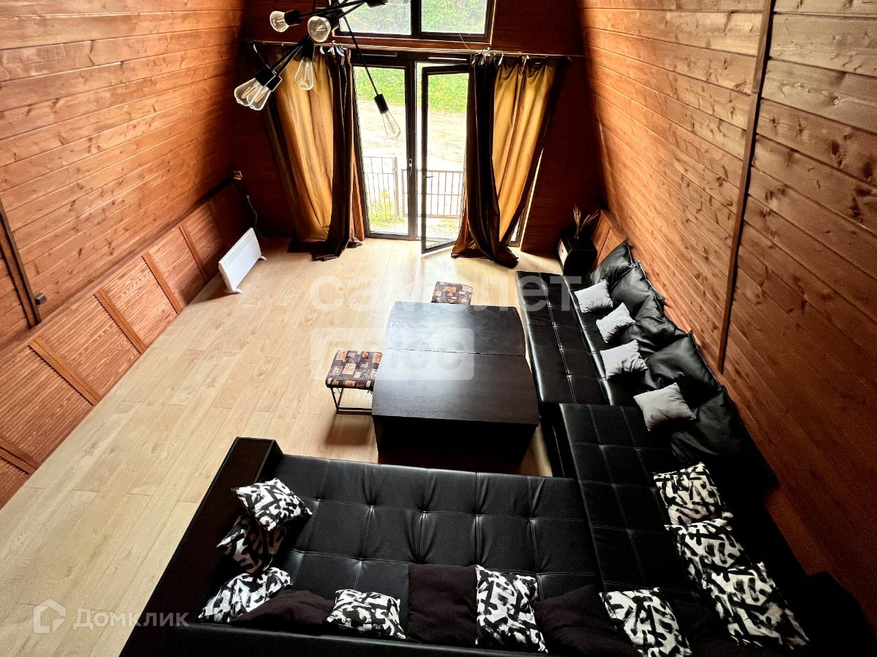 В доме есть кухня с камином, большой зал с панорамными окнами и видом на лес, две комнаты отдыха с панорамными окнами, два санузла.