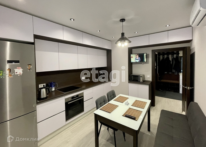В квартире установлена качественная и современная кухня со всей необходимой техникой (индукционная варочная панель, дух. шкаф, вытяжка, посудомойка на 60 см, холодильник и техника - BOSCH, вся новая, чеки и гарантийные талоны имеются).