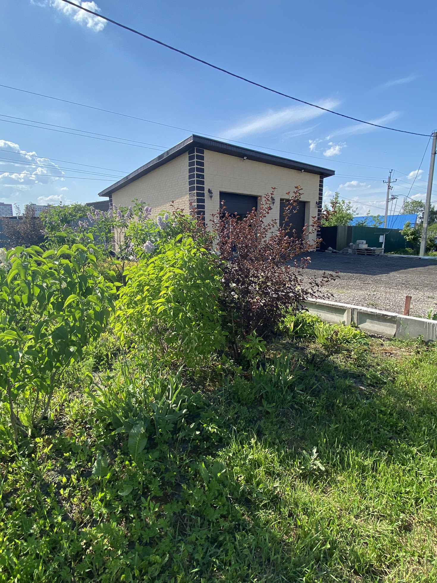 Проезд до участка круглый год.  Дорогу чистят. Соседи есть, живут и строятся. Электричество 30кВт на участке, скважина, септик,  газ по границе участка. Современный гараж на два бокса с кухней и санузлом.