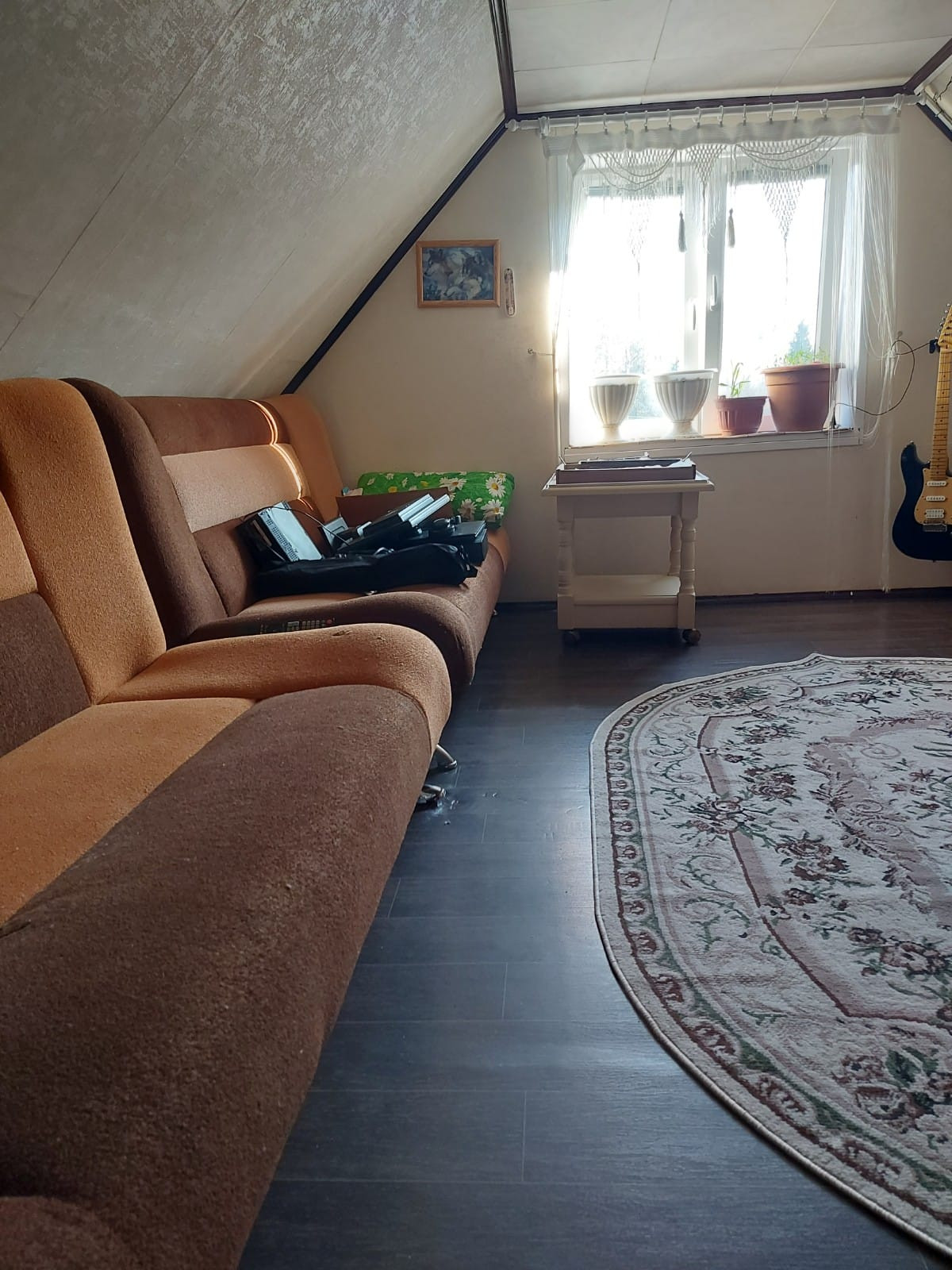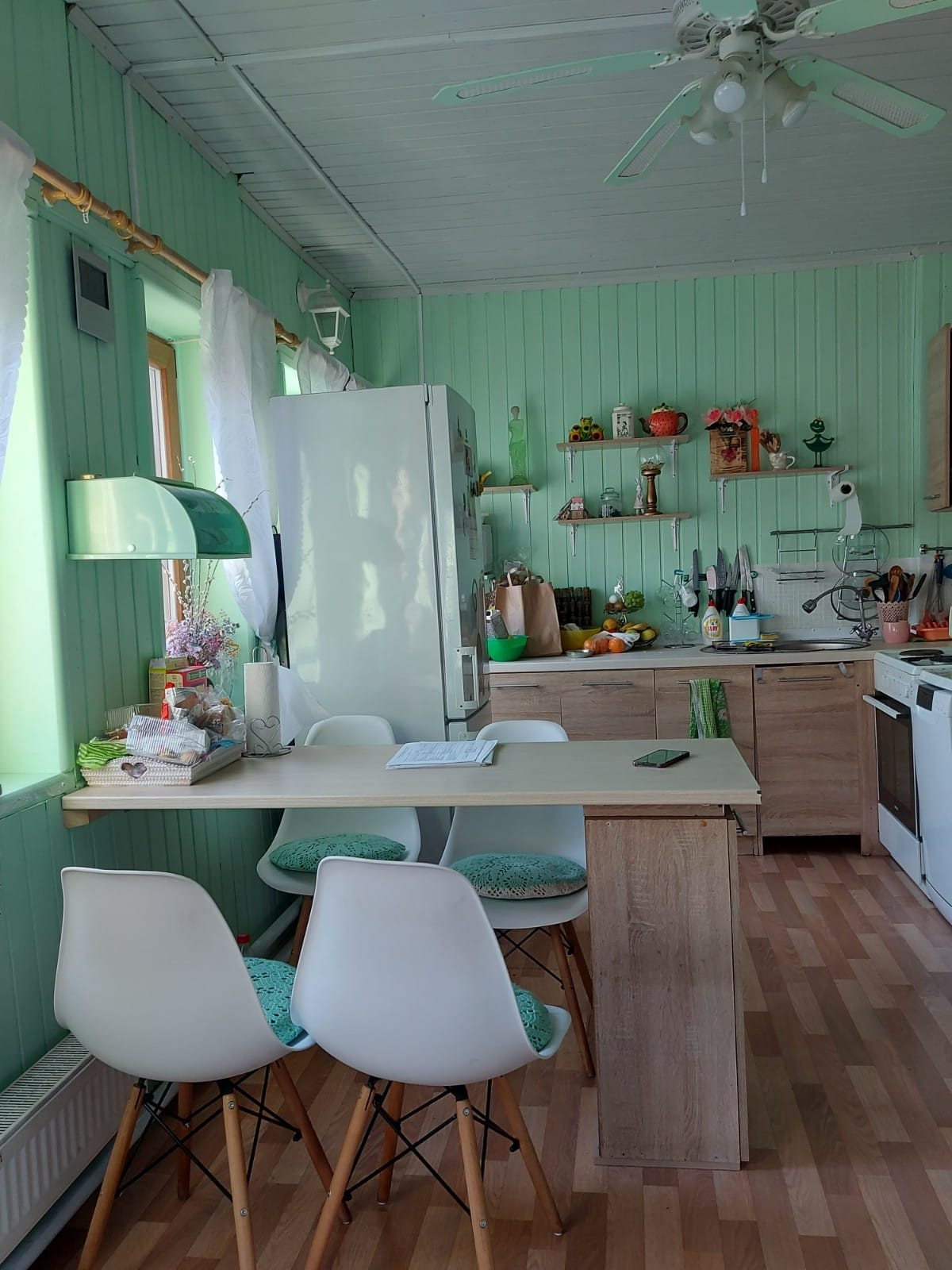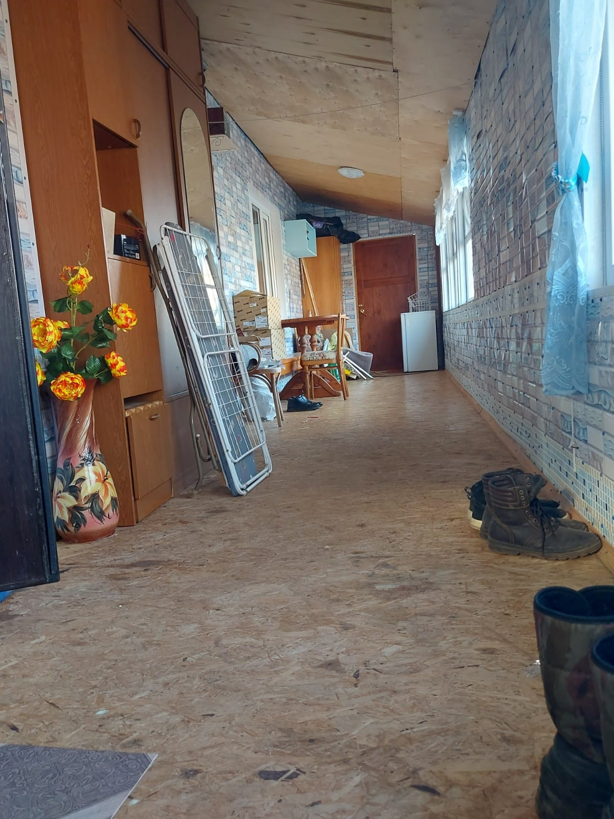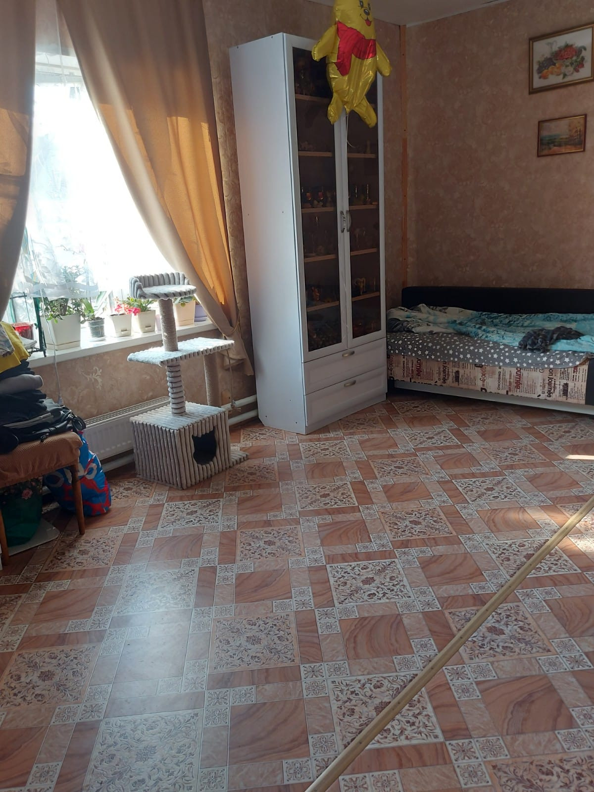Дом бревенчатый,полностью утеплен, на ленточном фундаменте, обшит сайдингом,установлены пластиковые окна. 4 комнаты.