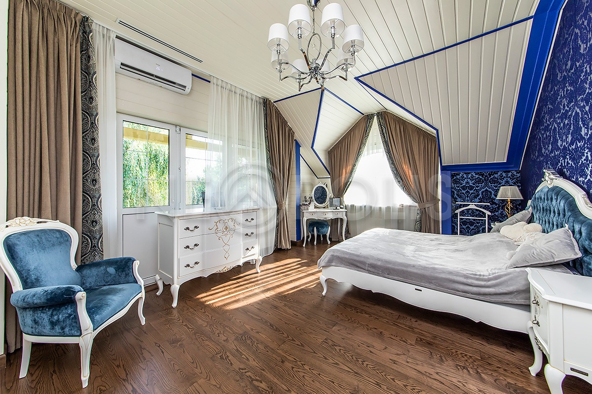 2 этаж: холл, хозяйская спальня со своей гардеробной и ванной комнатами, 2 спальни, ванная комната.