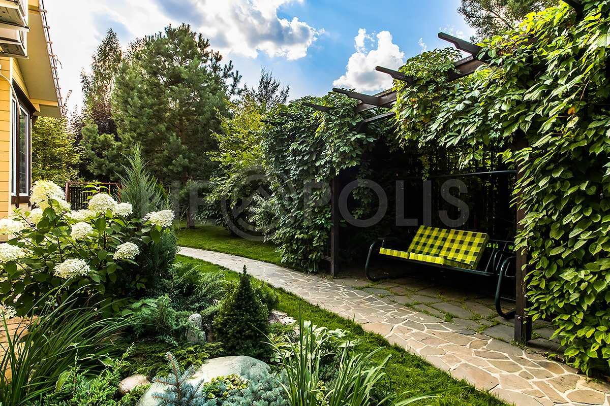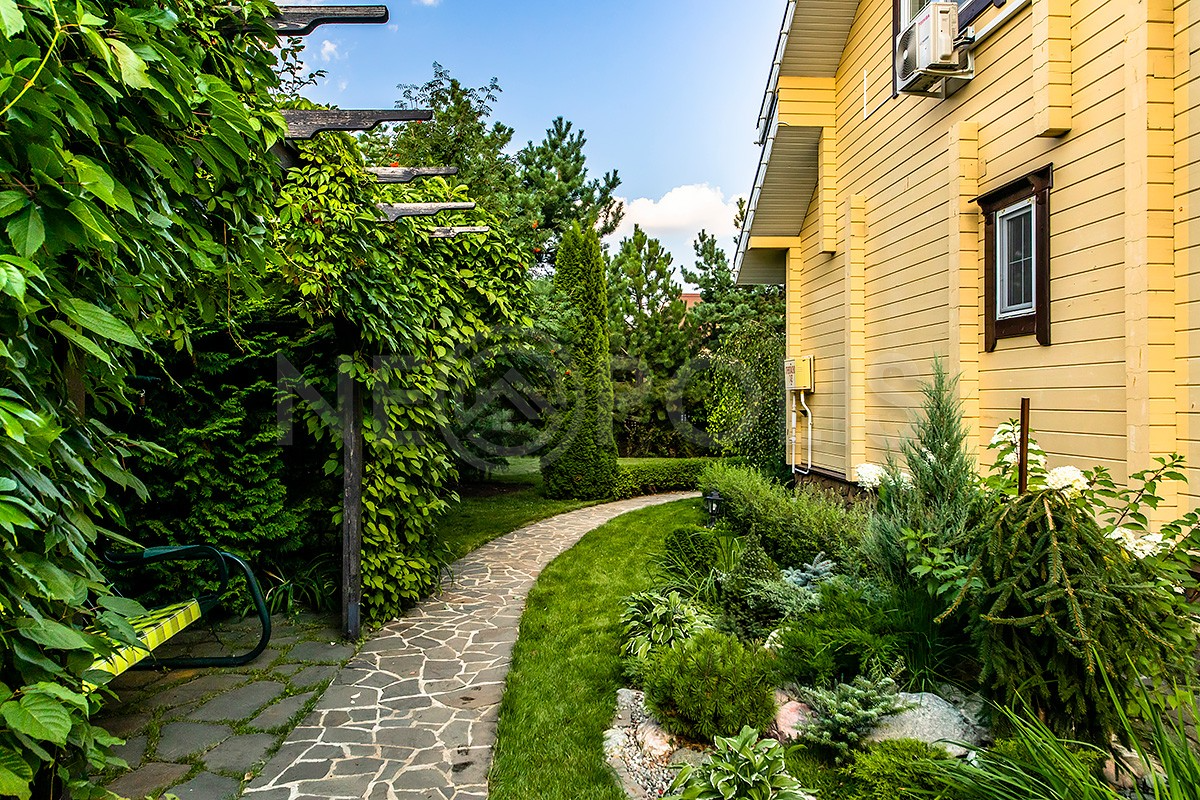 Великолепный ухоженный участок с ландшафтным дизайном, сделаны дорожки и освещение, посажены декоративные деревья, многолетние цветы.