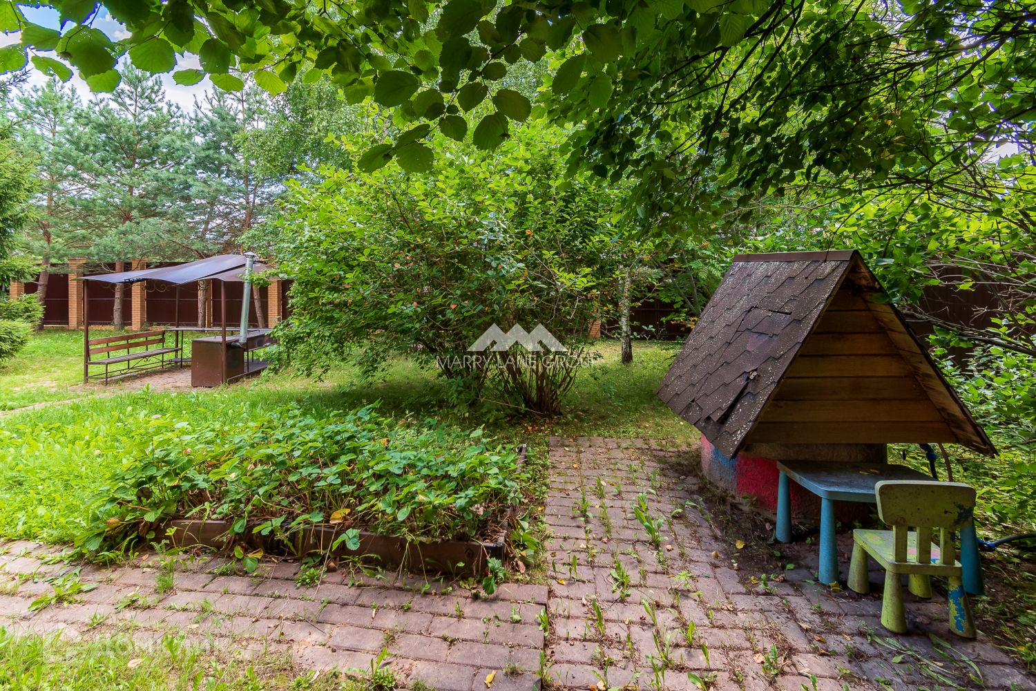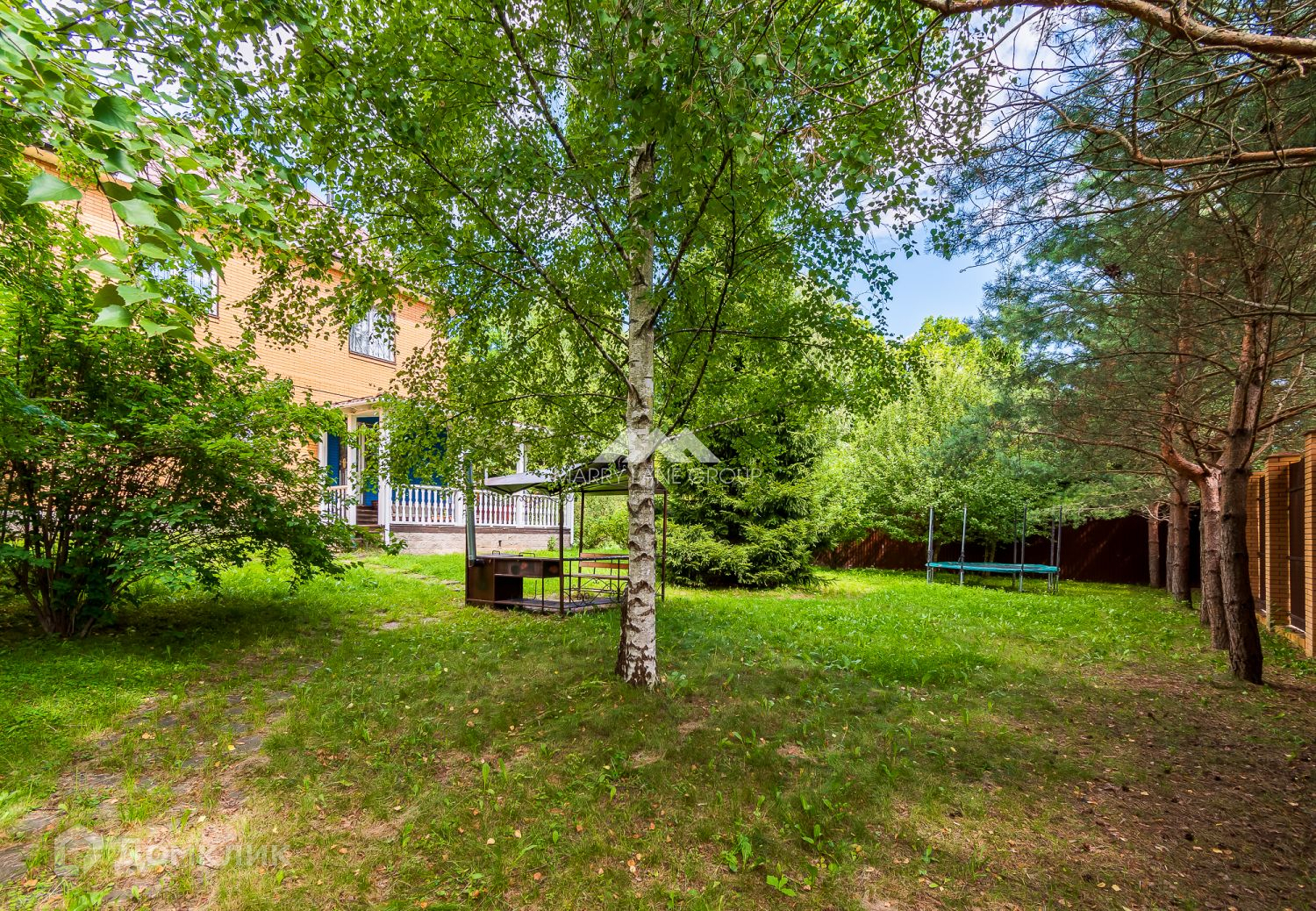 Также на участке имеется паркинг-навес на две автомашины с автоматическими воротами на пульте, система автоматического полива газона, веранда, беседка с мангальной зоной.