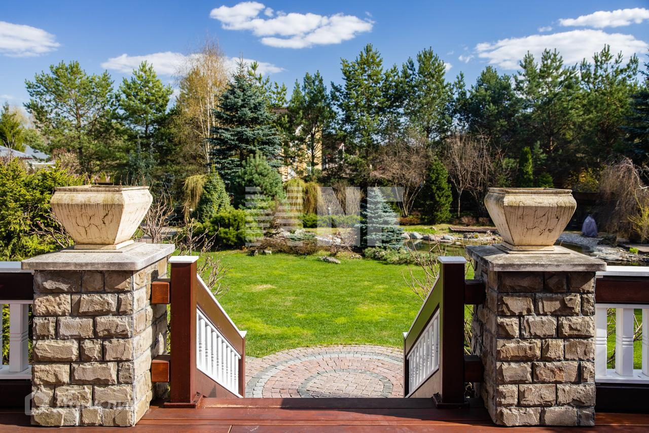 На участке выполнены потрясающие ландшафтные работы: высажены редкие растения, декоративный пруд с рыбами, сад с плодоносящими деревьями и кустарниками, теплица, ухоженный газон, проложены гранитом прогулочные дорожки, проведено уличное освещение, организована система авто-полива. Дополнительно на участке расположена двухэтажная баня на дровах, домик для садового инвентаря, гараж на 2 автомобиля, крытая парковка на 2 автомобиля, квартира для персонала, теплица, детская площадка.