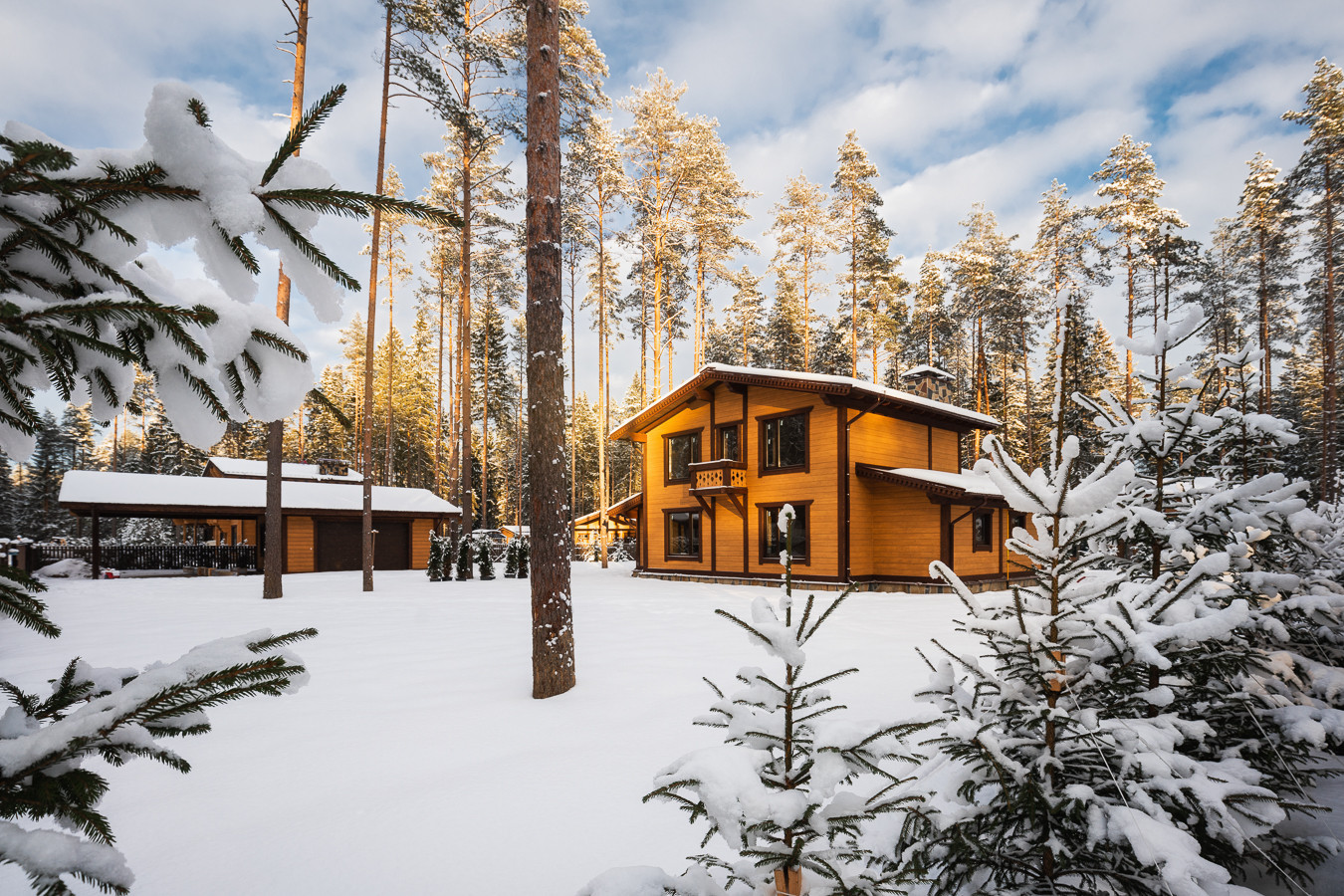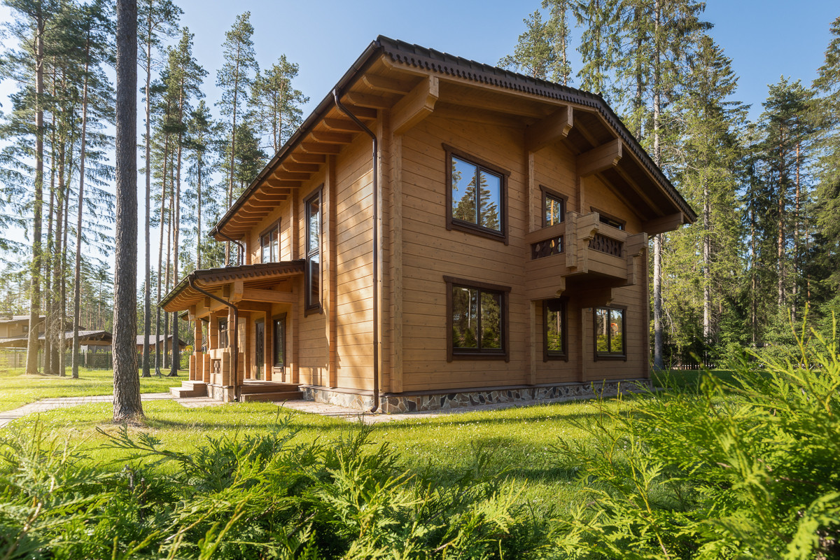 Альпийский шале в окружении густого соснового леса расположен в поселке премиум класса Лесная деревня в 10 км. от Санкт-Петербурга, на территории курорта Охта Парк.